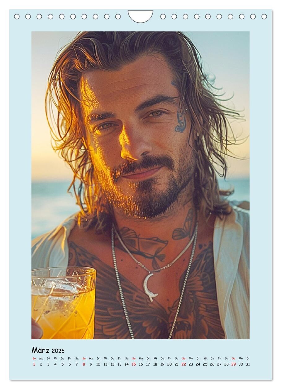 Entdecken Sie mit diesem Tattoo-Boys-Kalender die perfekte Verbindung von Kunst und Körper. Jeder Monat wurde mit Hilfe von KI erstellt und präsentiert einen schönen Mann mit tollen Tätowierungen vor der malerischen Kulisse des Strandes. Diese Illustrationen f...