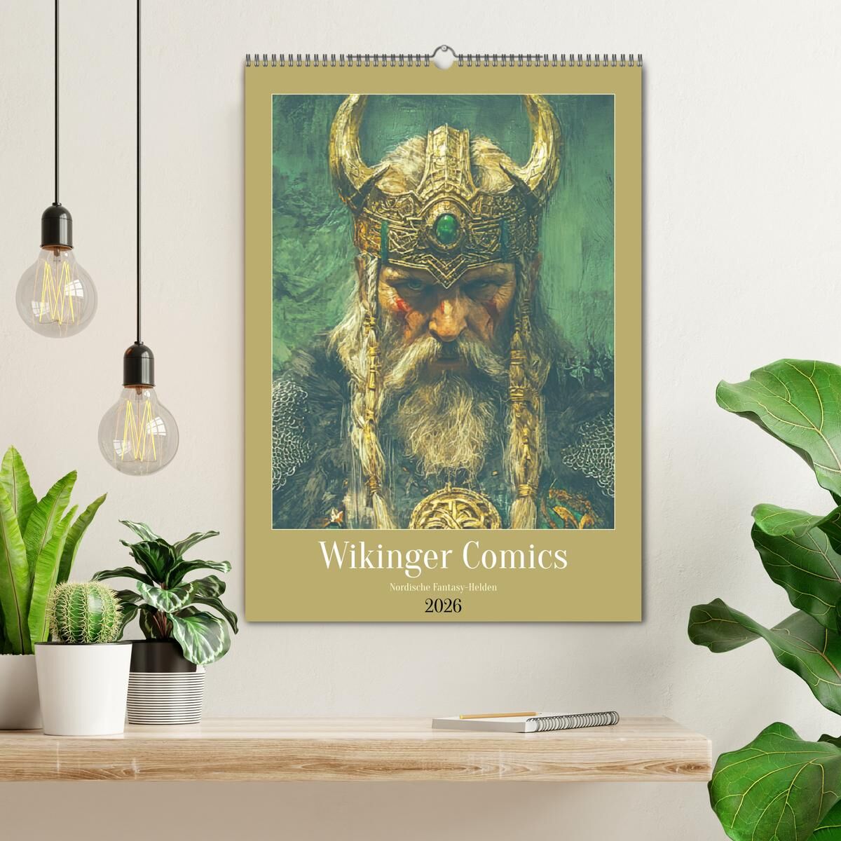 Wikinger Comics. Nordische Fantasy-Helden (Wandkalender 2026 DIN A2 hoch), CALVENDO Monatskalender