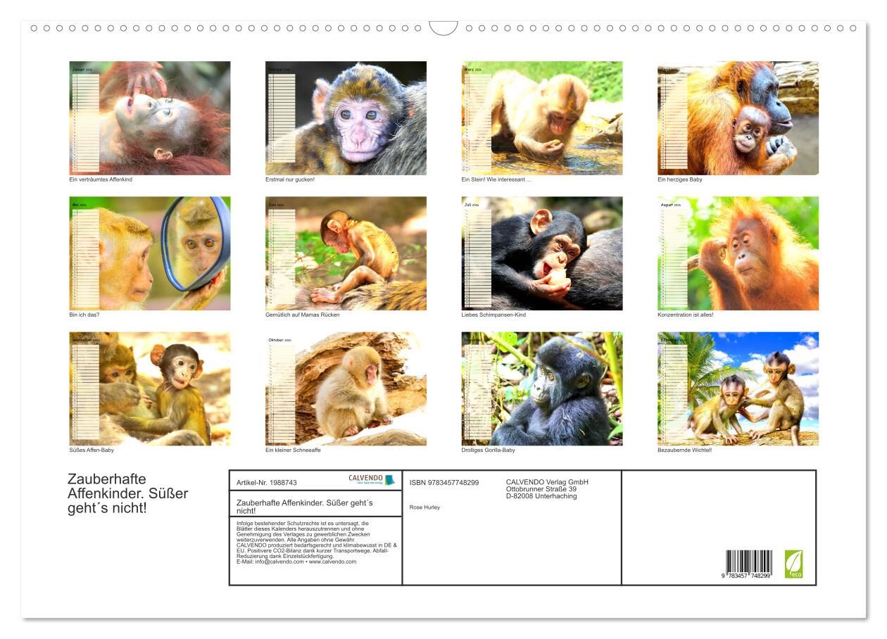 Zauberhafte Affenkinder. Süßer geht´s nicht! (Wandkalender 2026 DIN A2 quer), CALVENDO Monatskalender