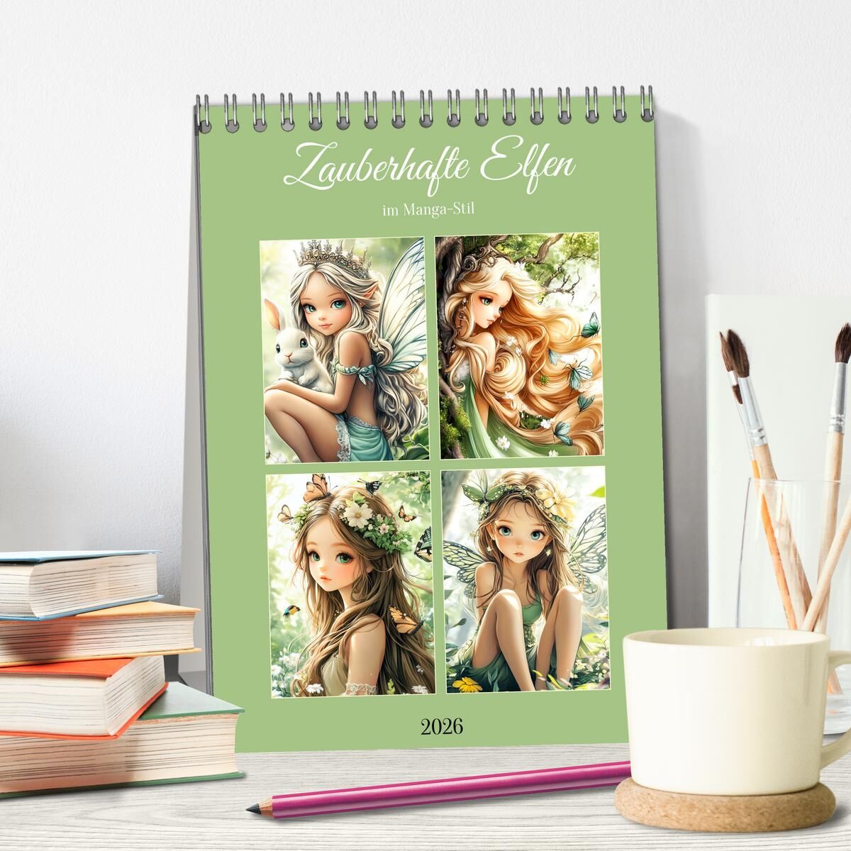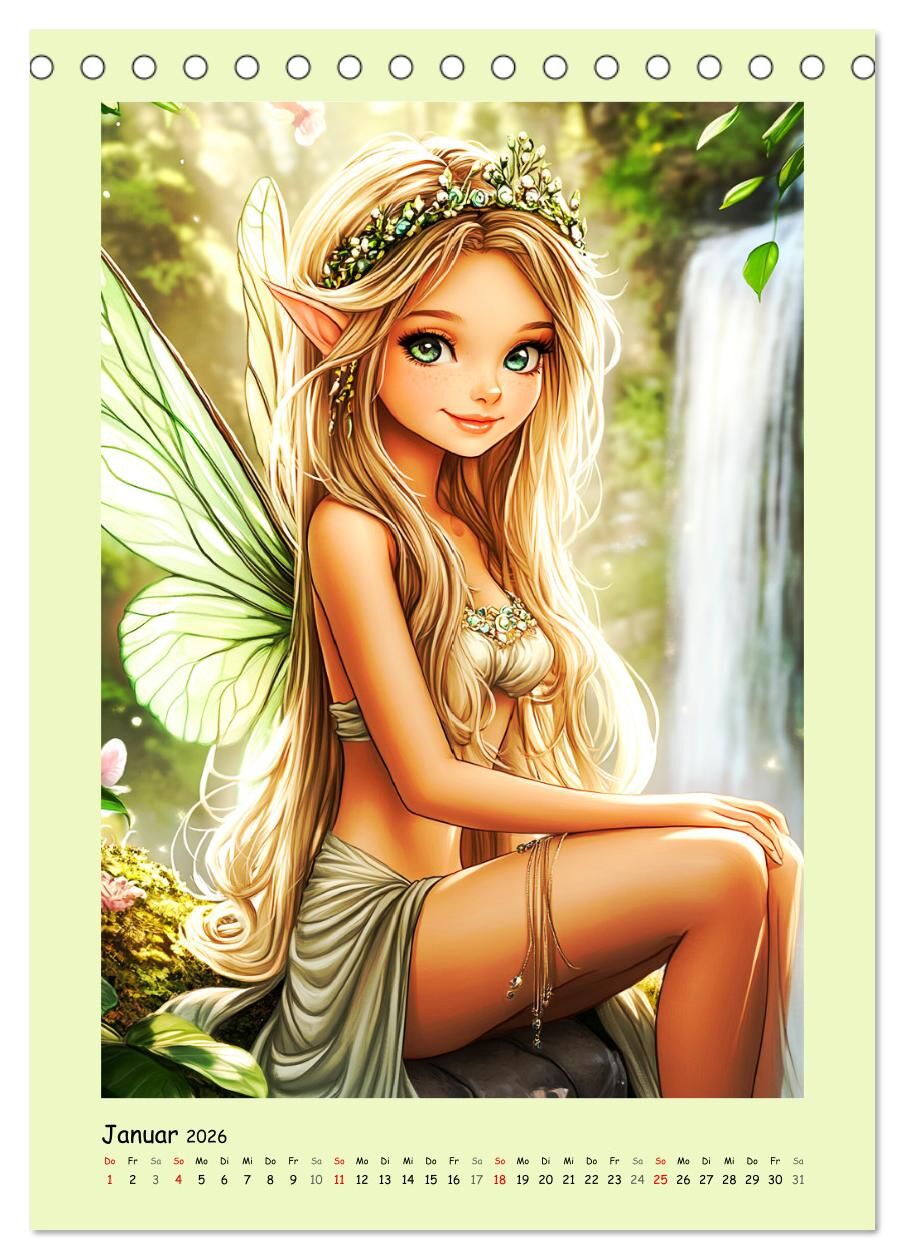Zauberhafte Elfen im Manga-Stil (Tischkalender 2026 DIN A5 hoch), CALVENDO Monatskalender