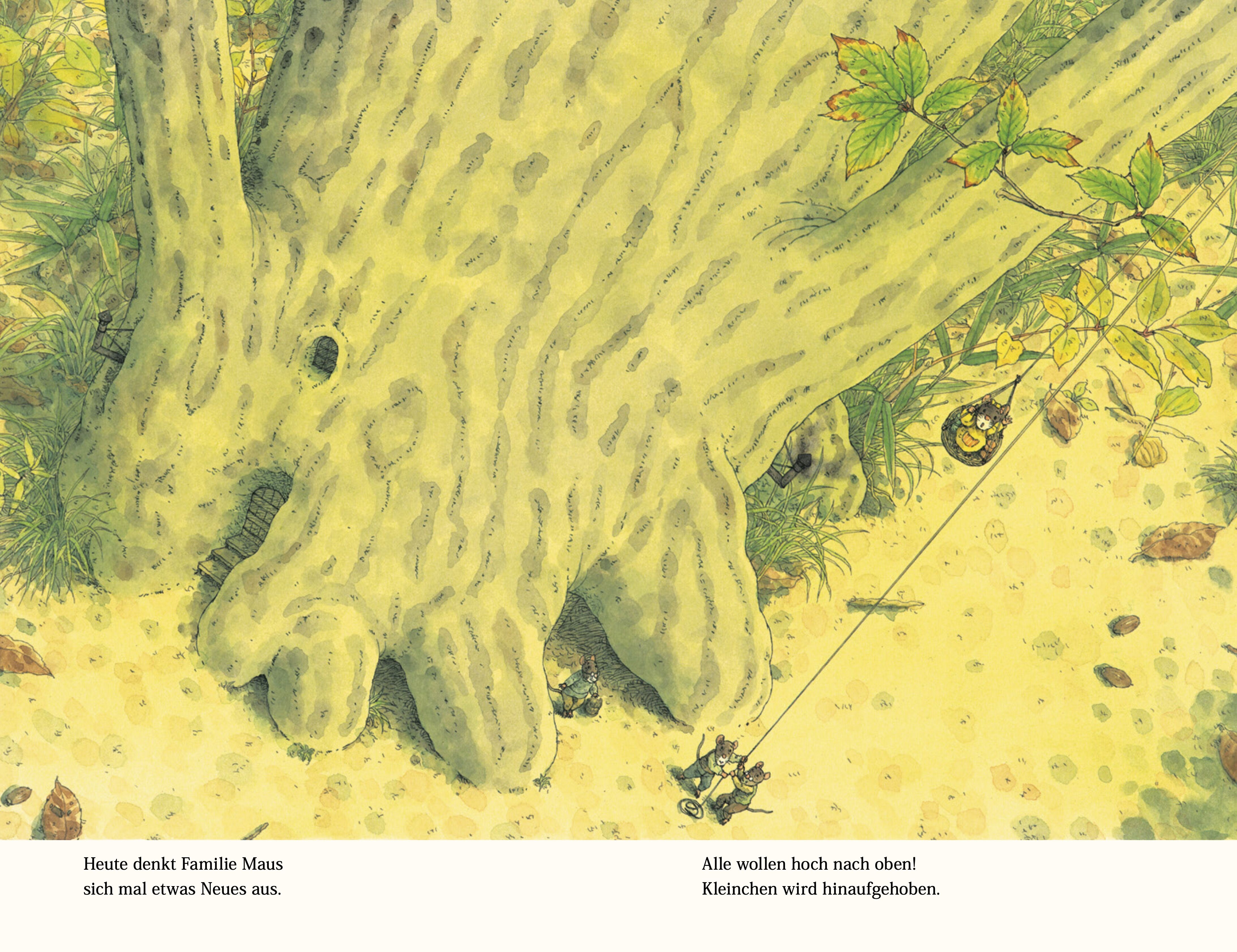Familie Maus baut in die Krone ihres Baumes eine Terrasse, von dort hat man eine herrliche Aussicht auf die wunderschöne Natur. Zur Feier des Tages findet das Abendessen auf dem neuen Hochsitz statt. Bald hat der Mond seinen spektakulären Auftritt und zeigt, ...