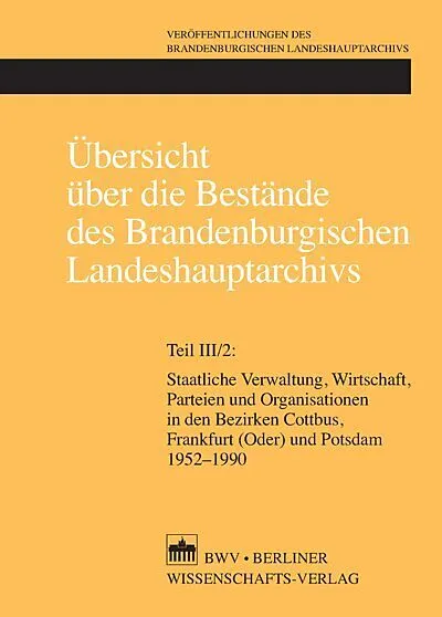 Mit dem zweiten Teil des dritten Bandes wird die 1964 begonnene "Übersicht über die Bestände des Brandenburgischen Landeshauptarchivs" vorerst abgeschlossen, womit der Bogen von den ältesten schriftlichen Zeugnissen des 12. Jahrhunderts über die preußische Pro...