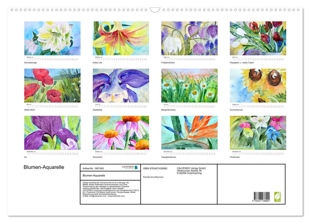 Blumen-Aquarelle (Wandkalender 2026 DIN A2 quer), CALVENDO Monatskalender