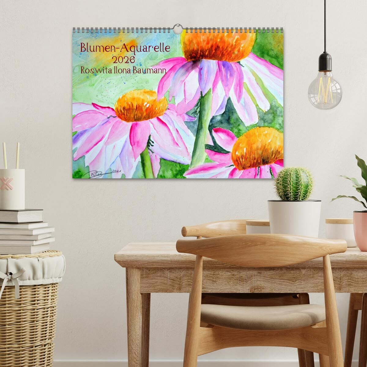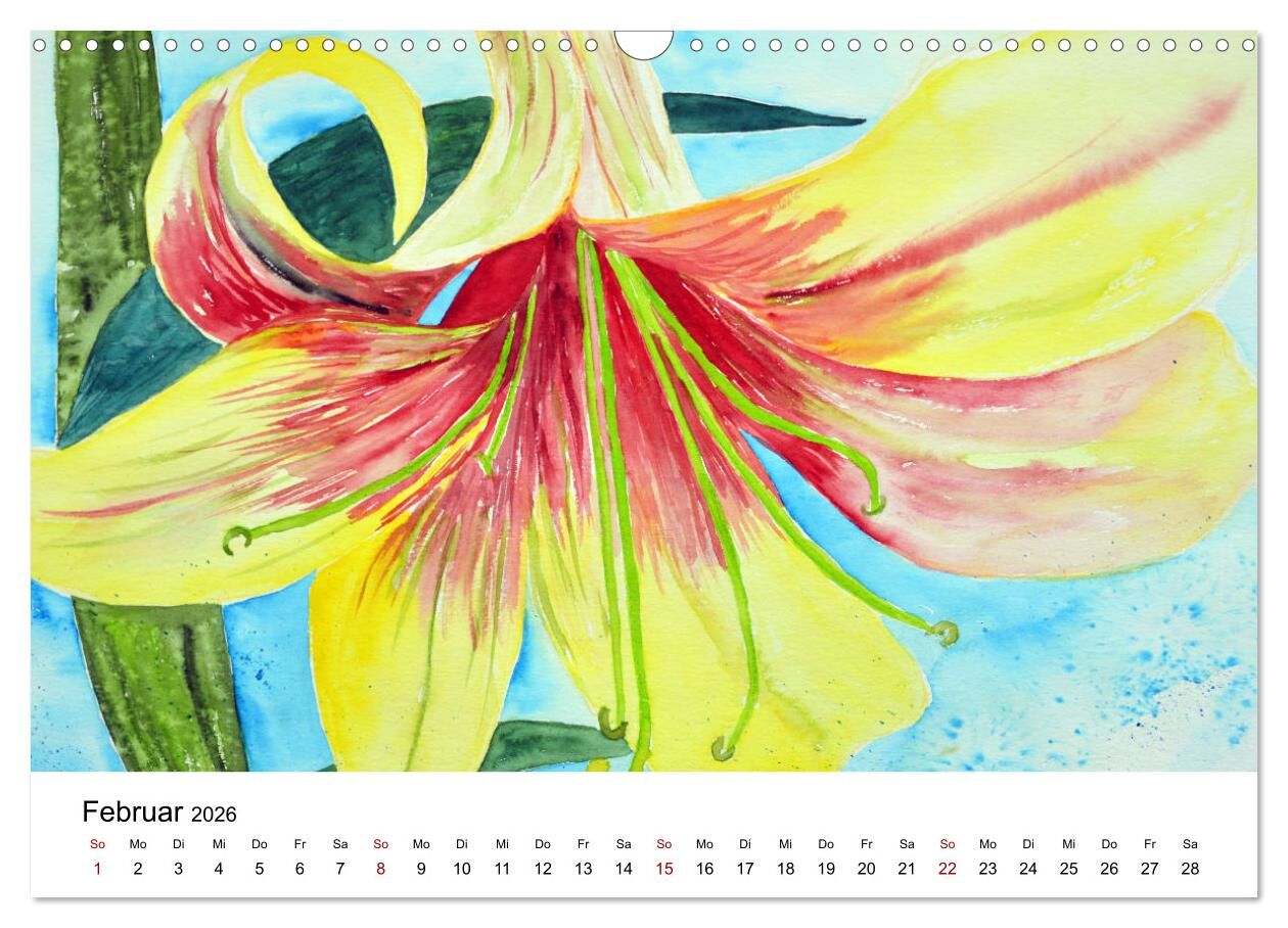 Blumen-Aquarelle (Wandkalender 2026 DIN A3 quer), CALVENDO Monatskalender