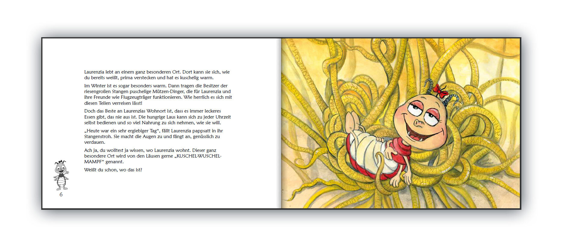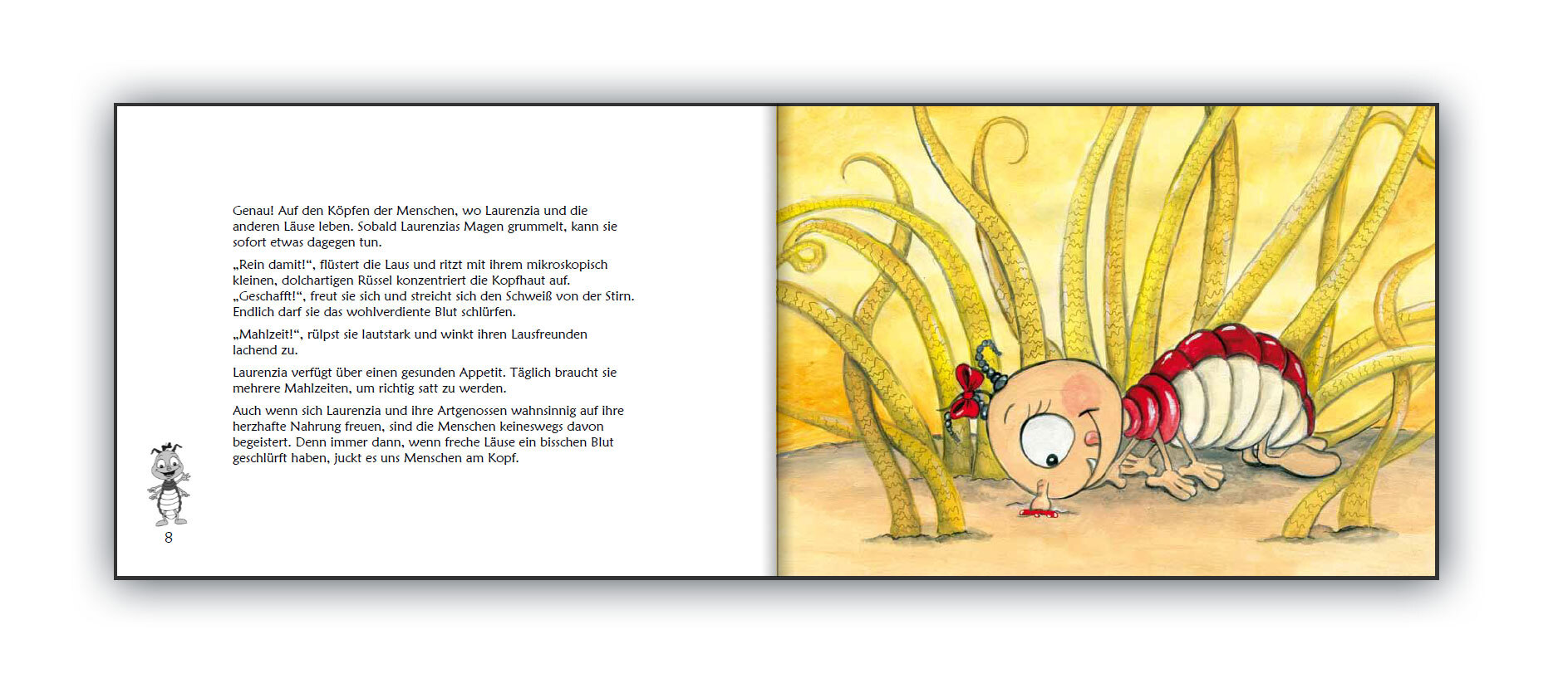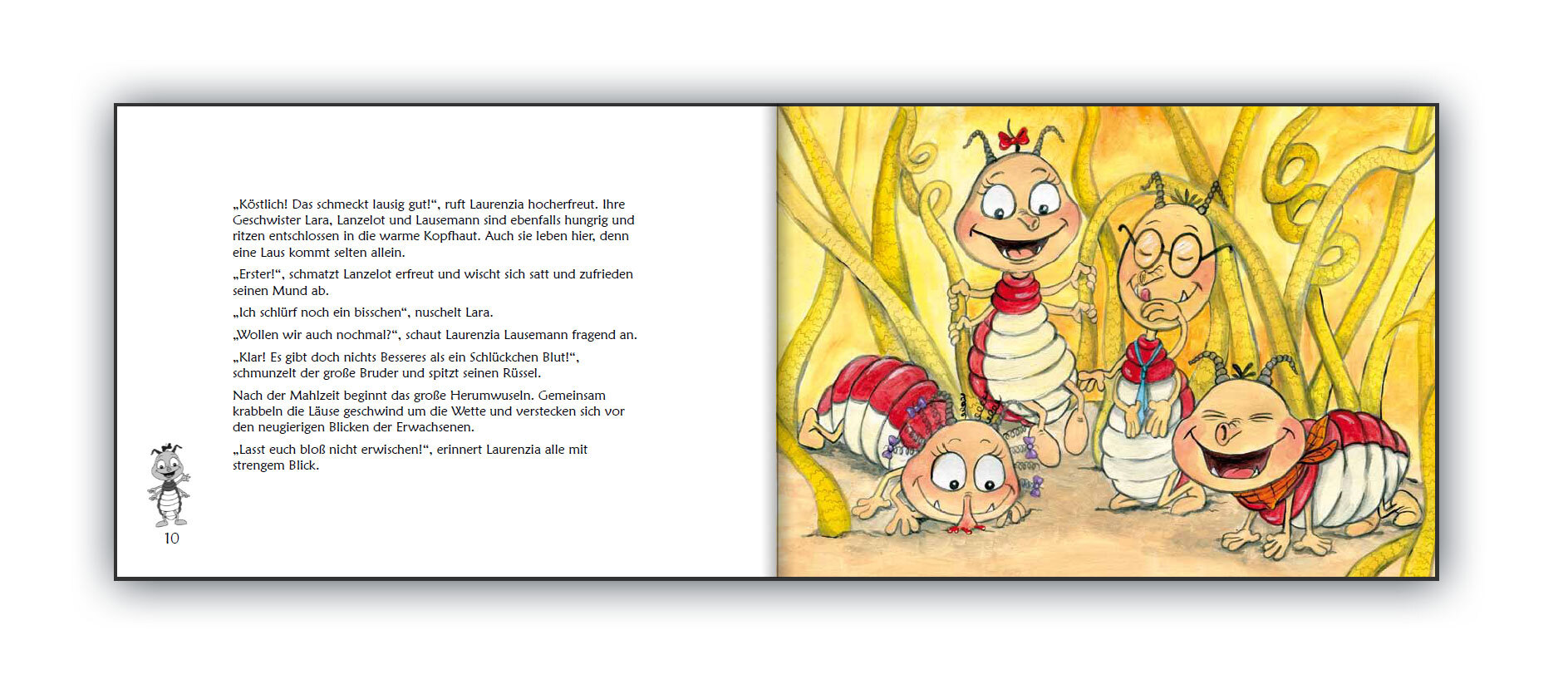 "Eins, zwei, drei, vier, alle meine Kinder hier", zählt Laurenzia ihre frisch gelegten Eierchen. Vier davon klebt die fleißige Laus jeden Tag mit Spezialkleber an die Haare des armen Florian. Als wäre das nicht genug, ritzt sie außerdem täglich in seine Kopfha...