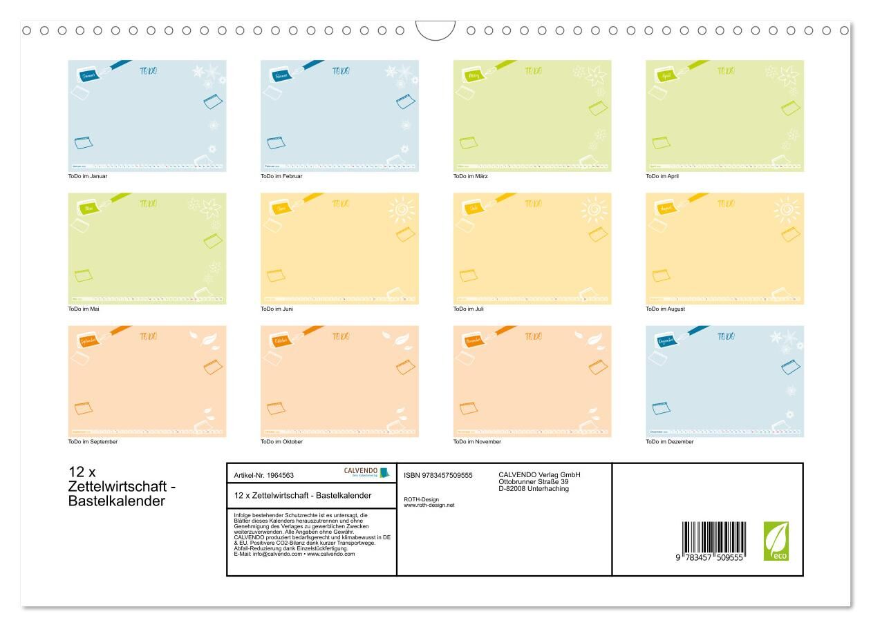 Mit diesem Kalender erhalten Sie eine Post-Its-Pinnwand für jeden Monat. So haben Sie Ihre Termine und ToDo's stets im Blick. Ein geeigneter Platz ist z.B. als Tischkalender auf Ihrem Schreibtisch oder als Wandkalender an einer Stelle an der Wand, an der Sie o...