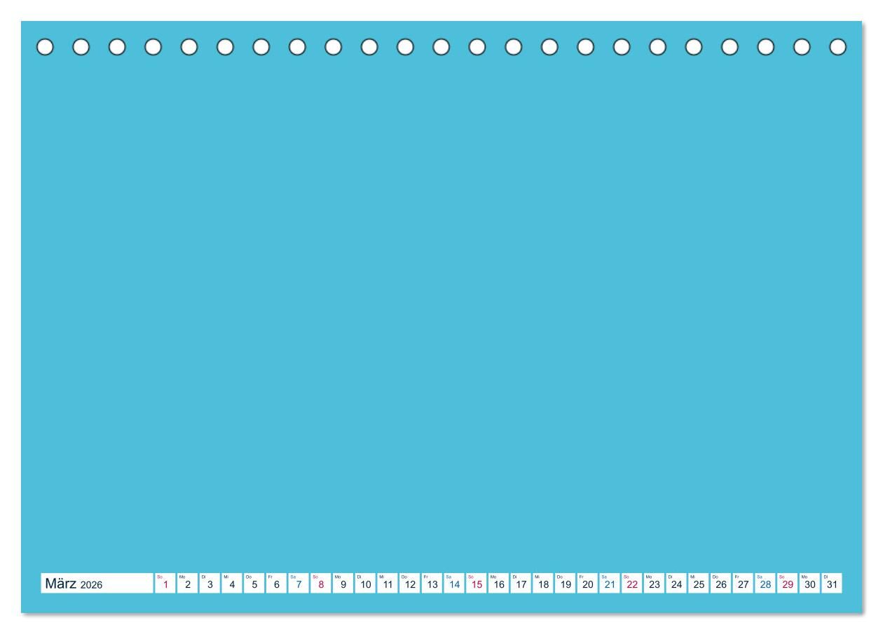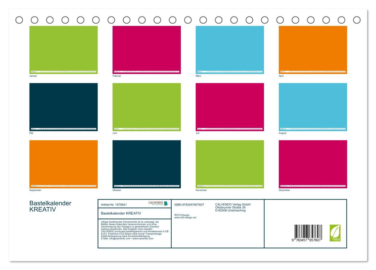 Bei diesem Kalender sind Ihrer Kreativität keine Grenzen gesetzt. Ob Fotos, gemalte Bilder oder Collagen. Kreieren Sie ihren eigenen Kalender und lassen Sie Ihren Ideen freien Lauf. Die Hintergründe in den frischen Farben hinterlegen Ihre Kunstwerke. Wir wünsc...