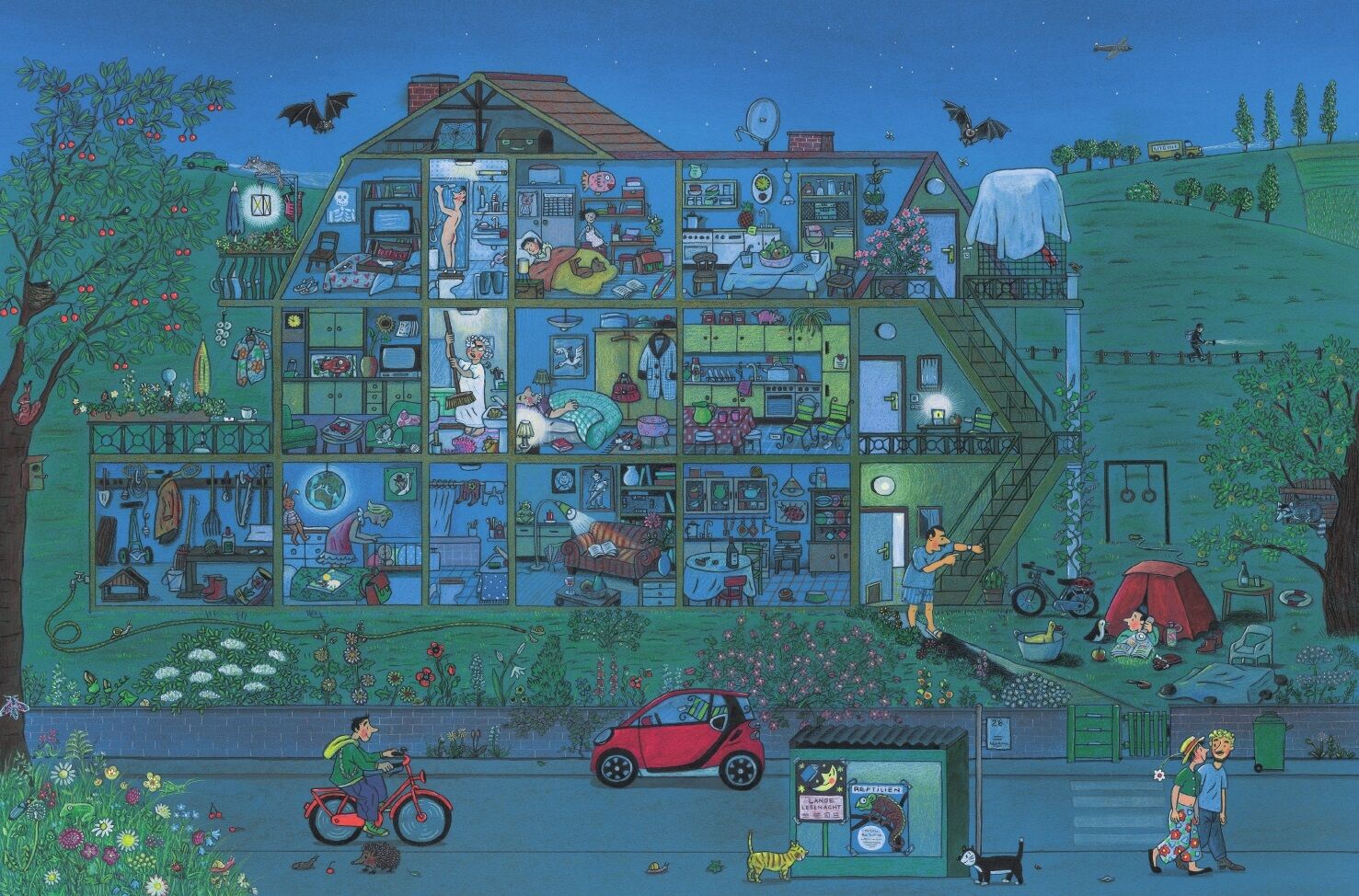 Es ist Nacht in Wimmlingen. Menschen und Tiere schlafen - jedenfalls einige. Andrea kann nicht einschlafen, weil Thomas im Stockwerk über ihr noch duscht. Niko schlummert dagegen friedlich unter einem Tuch in seinem Vogelbauer. Draußen flattern Fledermäuse her...
