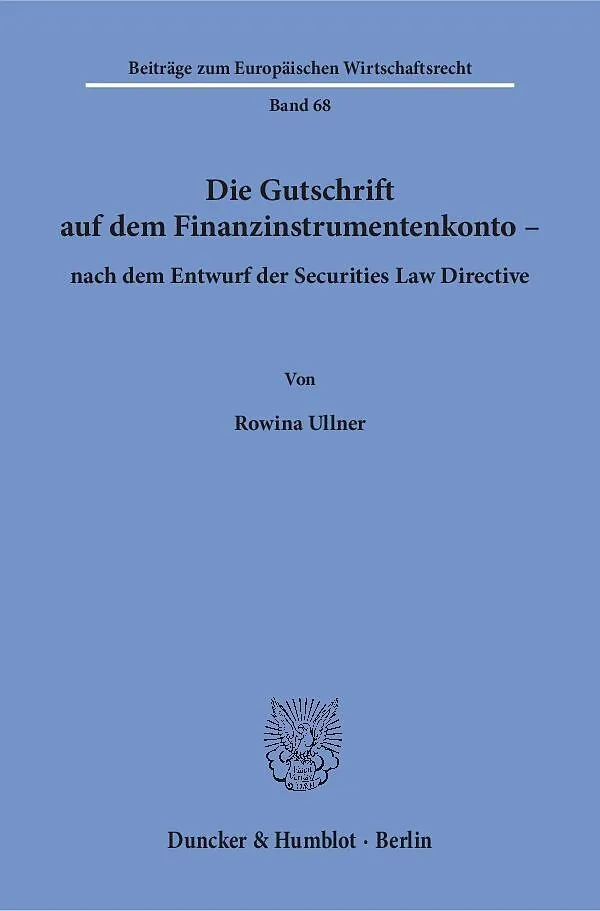 Veränderungen in der Verwahrungs- und Übertragungspraxis von Finanzinstrumenten sowie die Rechtsunsicherheit im Bereich der grenzüberschreitenden Transaktionen belegen die Erforderlichkeit vereinheitlichender Regelungen. Die angestrebte Securities Law Directiv...