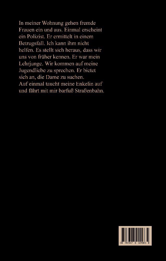 In meiner Wohnung gehen fremde Frauen ein und aus. Einmal erscheint ein Polizist. Er ermittelt in einem Betrugsfall. Ich kann ihm nicht helfen. Es stellt sich heraus, dass wir uns von früher kennen. Er war mein Lehrjunge. Wir kommen auf meine Jugendliebe zu sp...
