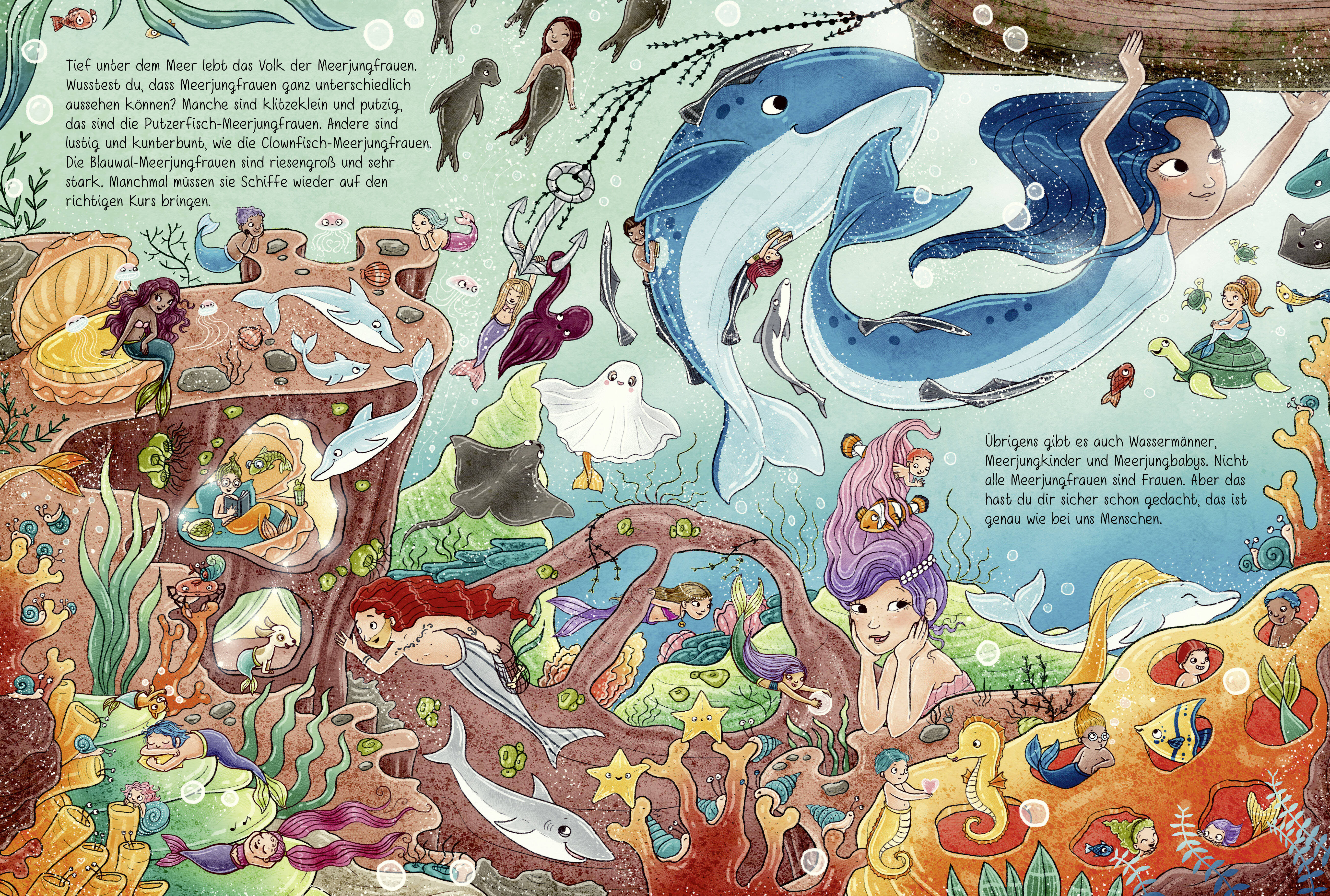 101 Meerjungfrauen und alles, was du über sie wissen musst! Hier wimmelt es ja vor Meerjungfrauen! Ihr liebt Wimmelbücher, ganz besonders magische mit Fabelwesen, Nixen und Unterwasserbewohnern? Du suchst Bilderbücher ab 4 Jahren mit modernen Illustrationen un...