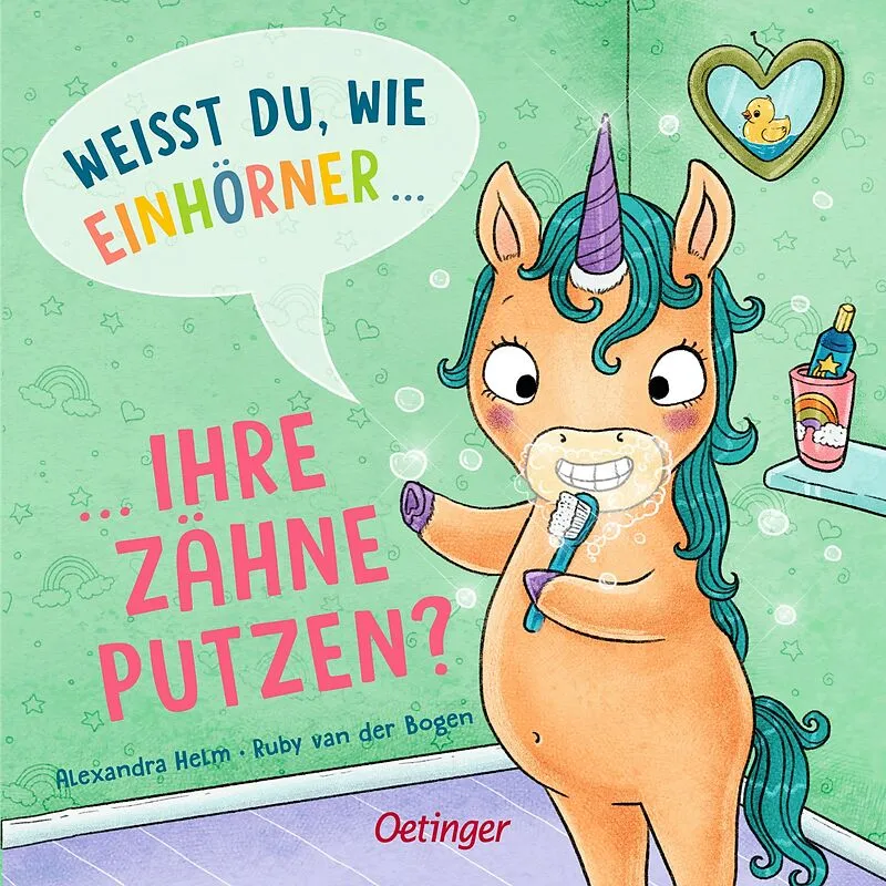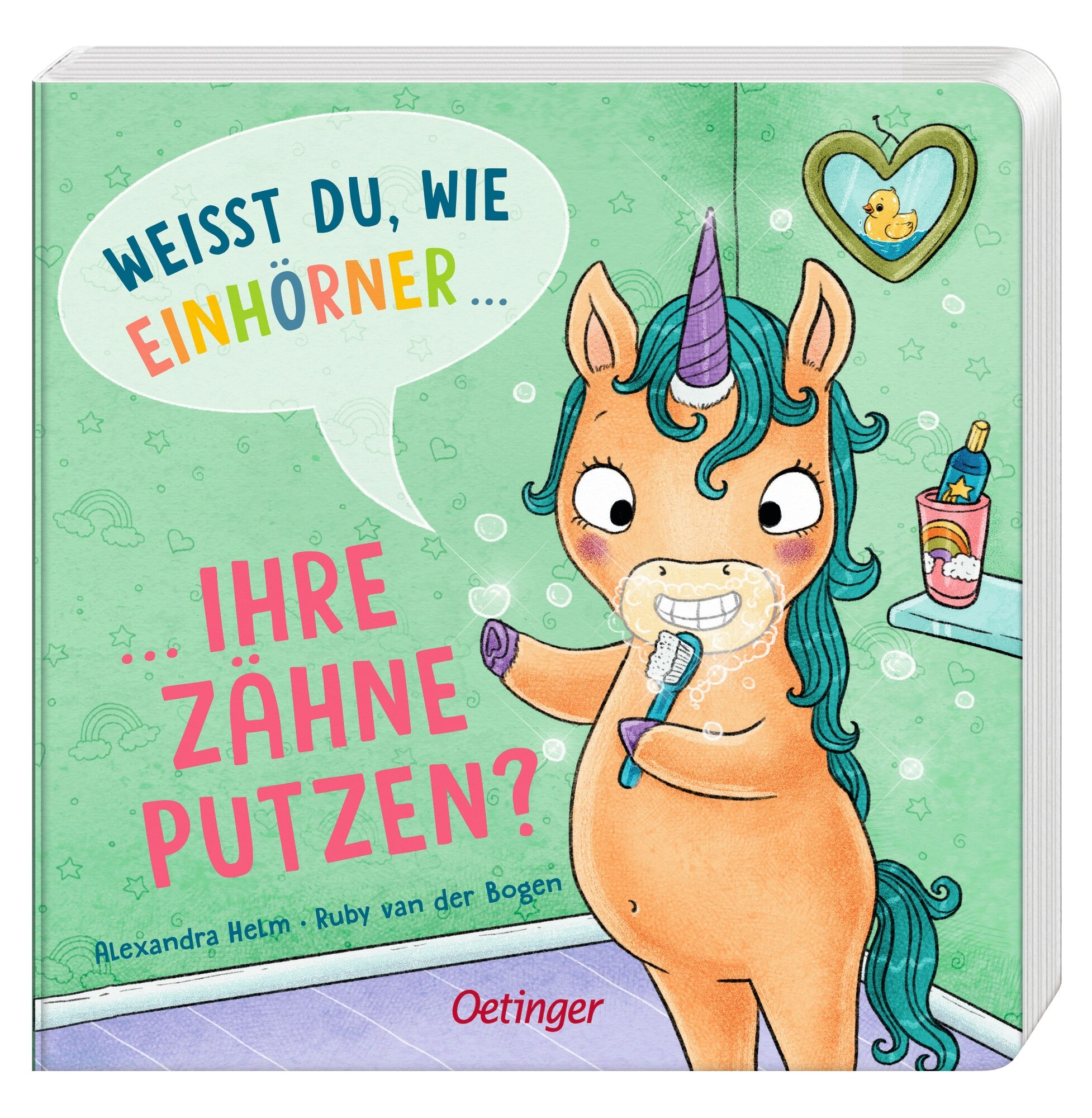 Weißt du, wie Einhörner ihre Zähne putzen? Zahnputzspaß mit Einhorn-Power Wie putzen Einhörner eigentlich ihre Zähne? Natürlich mit Elfen-Zahnpasta, extraviel Schaum und dem lustigen Zahnputzblues! Das kleine Einhorn zeigt Kindern ab 2 Jahren, wie seine Zahnbü...Weißt du, wie Einhörner ihre Zähne putzen?