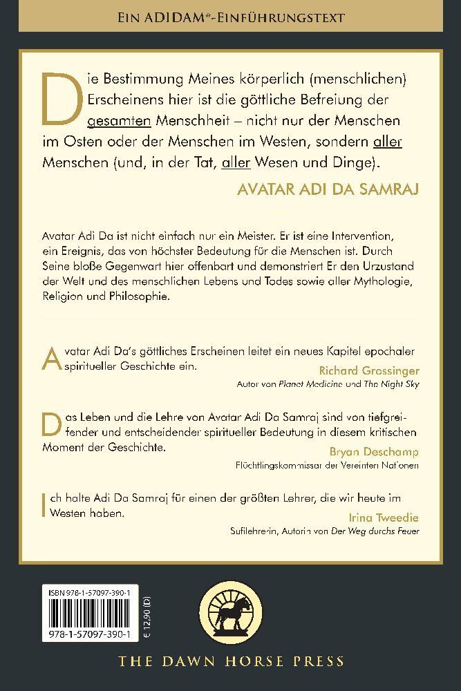 Die autorisierte Kurzbiografie von Avatar Adi Da SamrajDie 69 Jahre von Avatar Adi Da's Lebenszeit in menschlicher Form waren nur das sichtbare Zeichen Seines großen göttlichen Prozesses in der menschlichen Welt, eine wundersame und mitfühlende Geste, um ...