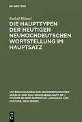 Keine ausführliche Beschreibung für "Die Haupttypen der heutigen neuhochdeutschen Wortstellung im Hauptsatz" verfügbar. Klappentext Frontmatter -- Vorwort -- Inhalt -- Heutige neuhochdeutsche Einheiten der Wortstellung -- Altere Ansichten; Begründung...