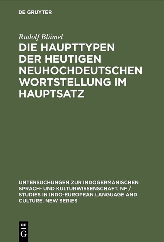 Keine ausführliche Beschreibung für "Die Haupttypen der heutigen neuhochdeutschen Wortstellung im Hauptsatz" verfügbar. Klappentext Frontmatter -- Vorwort -- Inhalt -- Heutige neuhochdeutsche Einheiten der Wortstellung -- Altere Ansichten; Begründung...