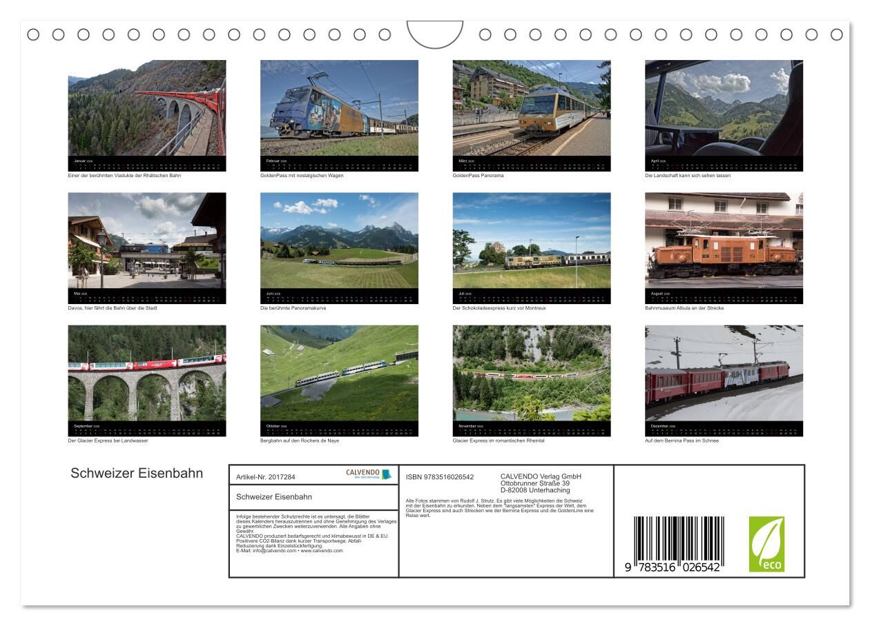 Schweizer Eisenbahn (Wandkalender 2026 DIN A4 quer), CALVENDO Monatskalender
