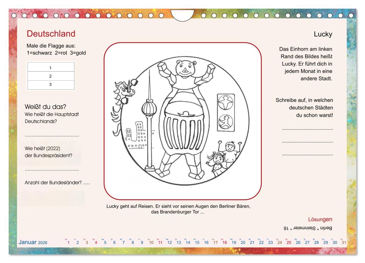 Das Einhorn Lucky reist durch das Jahr und landet jeden Monat in einem anderen europäischen Land. Die unterschiedlichen Kulturen laden dazu ein kreativ zu sein, Rätsel zu lösen und zu lesen. Seid gespannt.