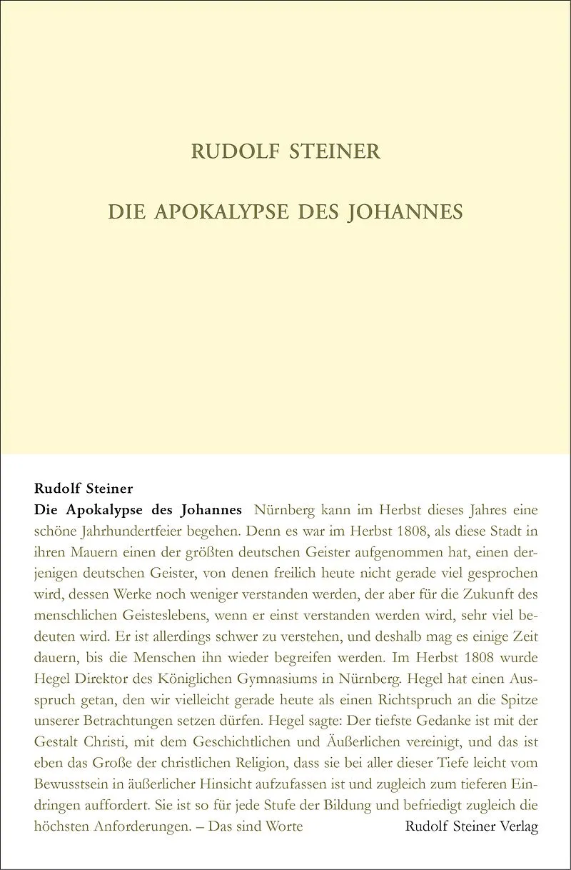 Inhalt (Auswahl): Die Apokalypse als Darstellung der christlichen Einweihung / Das erste und zweite Siegelbild / Die Briefe an die sieben Gemeinden / Die sieben Siegel und ihre Enthüllung / Die Entwicklung des Menschen und der Erde. Die vierundzwanzig Ältesten...