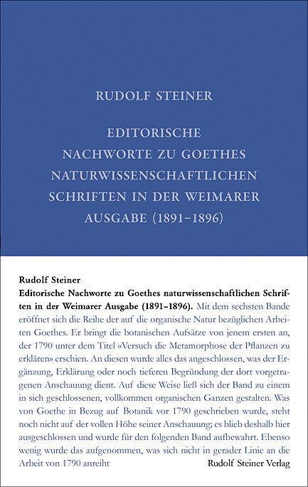 Von 1884 bis 1897 hat Rudolf Steiner die funfbändige Ausgabe der Naturwissenschaftlichen Schriften Goethes in der «Deutschen National-Litteratur» herausgegeben. Die Einleitungen Steiners zu dieser Ausgabe sind gesammelt publiziert in Band 1 der Gesamtausgabe, ...
