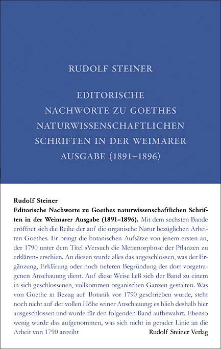 Von 1884 bis 1897 hat Rudolf Steiner die funfbändige Ausgabe der Naturwissenschaftlichen Schriften Goethes in der «Deutschen National-Litteratur» herausgegeben. Die Einleitungen Steiners zu dieser Ausgabe sind gesammelt publiziert in Band 1 der Gesamtausgabe, ...