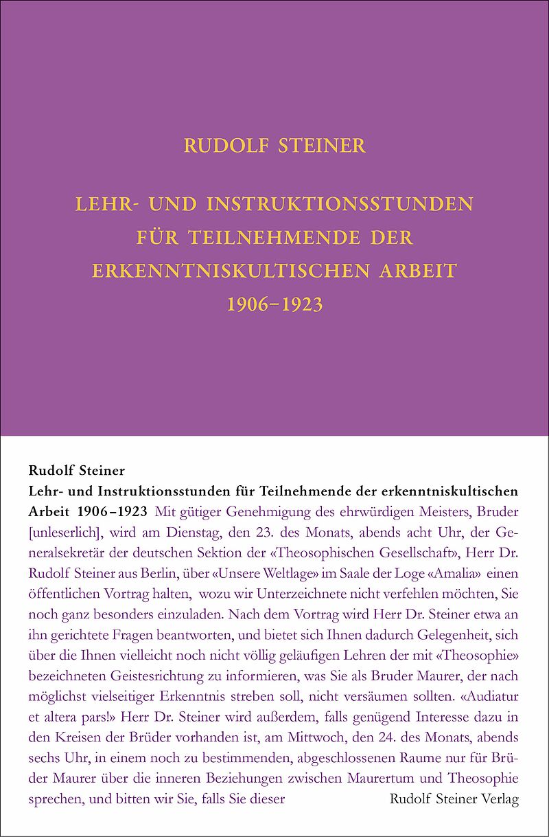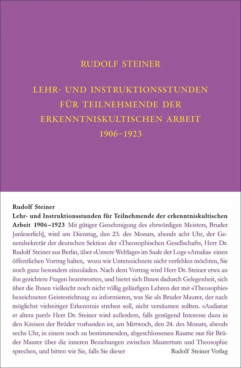 Spannende Einblicke in die esoterische Schulung - Dokumentation der erkenntniskultischen (freimaurerischen) Arbeit - Gedächtnisaufzeichnungen von Schülern Rudolf Steiner war von 1906 bis circa 1914 auch in erkenntniskultischer (freimaurerischer) Arbeit tätig...