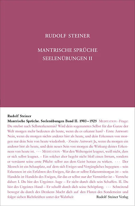 Inhalt: I. Mantrische Sprüche und Meditationssätze. Seelenübungen. Für die Tage der Woche. Zur Stärkung der Lebenskräfte. Zur Hilfe für Andere. Zum Gedenken an Verstorbene. II. Mantrische Sprüche für anthroposophische Arbeitszusammenhänge. III. Freie Übertragu...