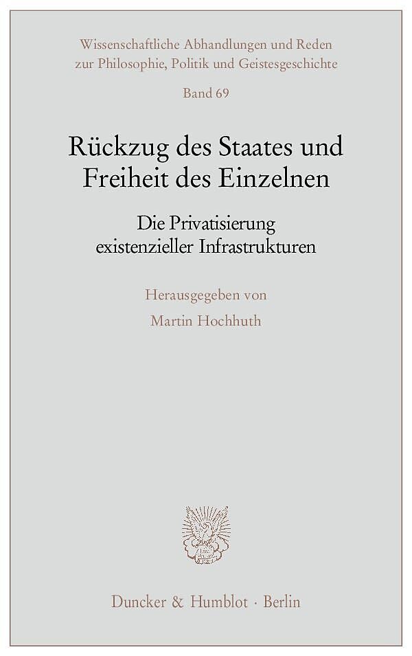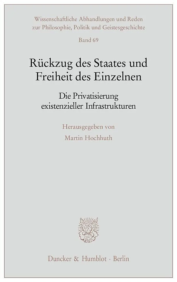 Siegfried Broß Der Umbau mehr oder weniger existentieller Infrastrukturen, insbesondere der sozialen Sicherung, als Demokratieproblem Eberhard Eichenhofer Verstaatlichung oder Privatisierung sozialer Risiken und Sicherungen? Thomas Würtenberger und Steffen Tanneberger Privatisierung der inneren Sicherheit? Michael Kloepfer Gesetzgebungsoutsourcing Zur Erstellung von Gesetzentwürfen insbes. durch Rechtsanwälte Günter Knieps Zur Arbeitsteilung zwischen Markt und Staat bei der Bereitstellung von Eisenbahninfrastrukturen Michael Fehling Verschiedene Arten demokratischer Steuerung am Beispiel der deutschen Straßen- und Eisenbahninfrastruktur Michael Ronellenfitsch Eisenbahnwesen als Daseinsvorsorge Christoph Ohler Staat und Markt als interdependente Systeme Hanno Kube Staatsfinanzen und Finanzmarktrisiken Dietrich Murswiek Die Bankenkrise als Demokratieproblem Heinrich Haasis Öffentlich-rechtlich gebundenes und regional »geerdetes« Kreditwesen als Stabilitätsbeitrag, insb. die Sparkassen in der Bankenkrise Rolf Stürner Die Marktideologie nach der Finanzkrise Katrin Blasek Der Staat, die Gesellschaft und der Einzelne in China Martin Hochhuth Verteidigung der Demokratie gegen ein irregeleitetes Finanzwesen