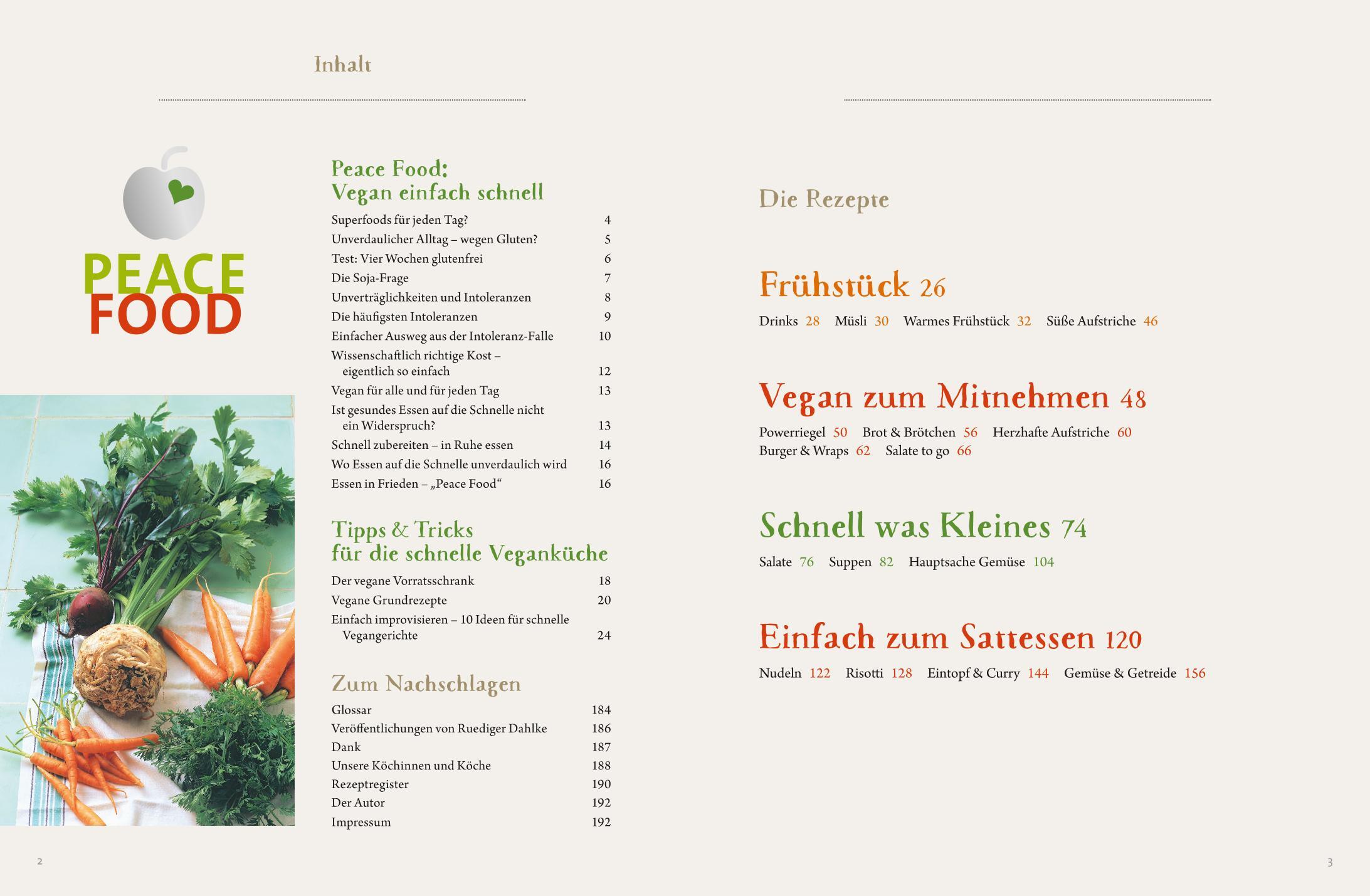 Vegane Rezepte - schnell und einfach für die Alltagsküche - das praktische Kochbuch zum Bestseller Peace Food. PEACE FOOD - Vegan einfach schnell ist die kulinarische Weiterführung der Bestseller zur veganen Ernährung von Ruediger Dahlke. In seiner Einleitung ...
