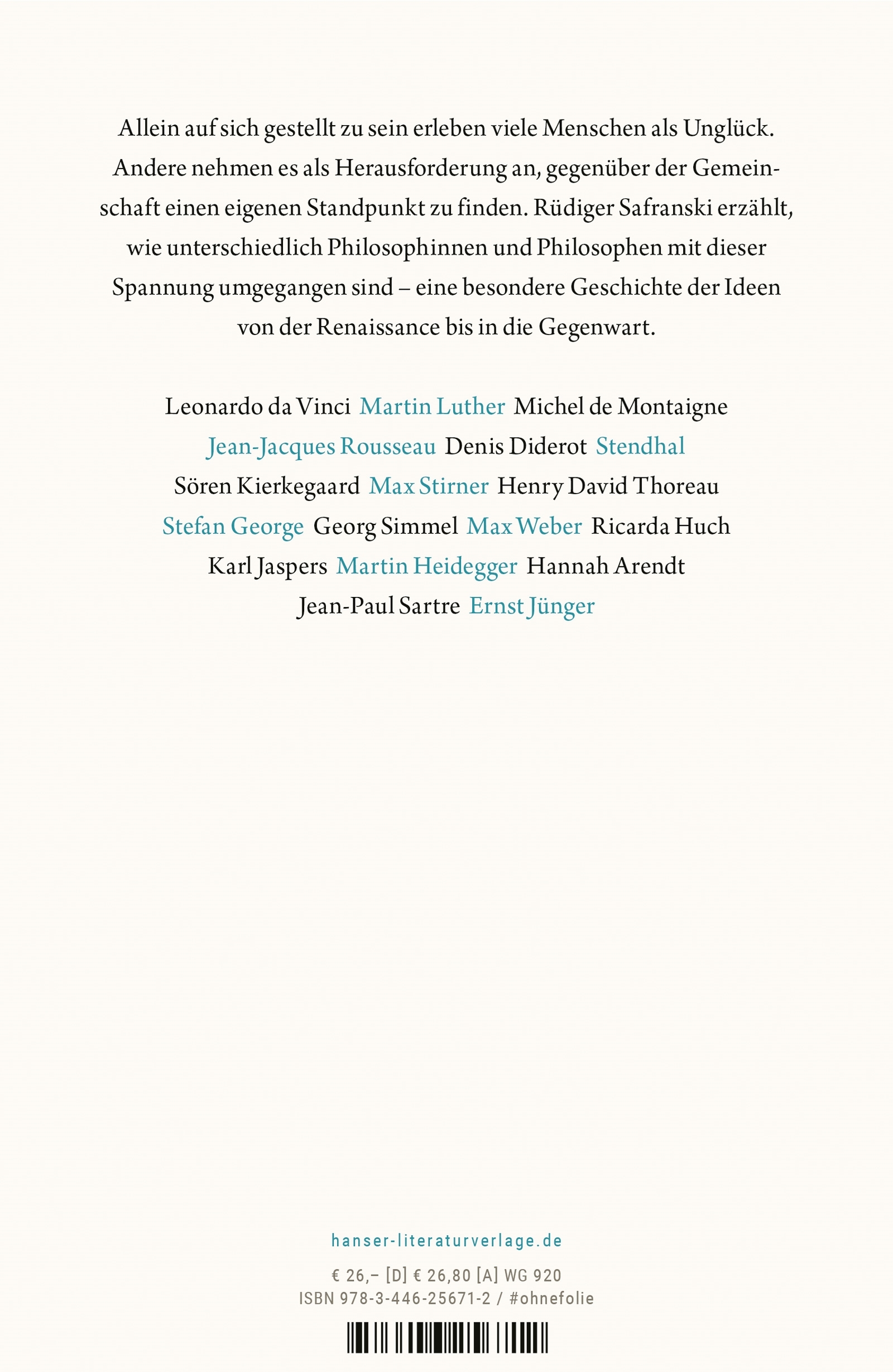 Wie kommen wir damit zurecht, auf uns allein gestellt zu sein? Rüdiger Safranski über den Gegensatz zwischen Individuum und Gesellschaft. Eine ganz besondere Geschichte der Philosophie Jeder Mensch ist zunächst einmal ein Einzelner. Das kann zur Belastung werd...