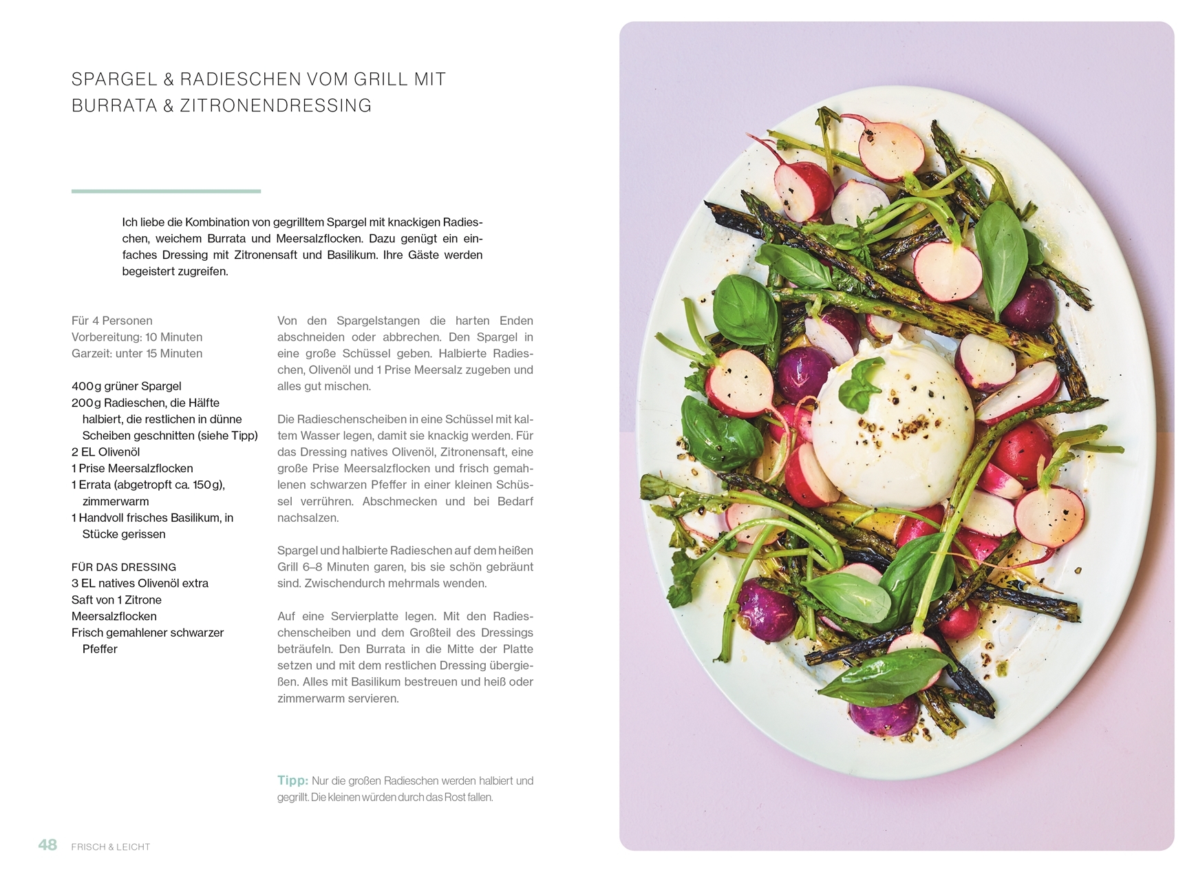 Vegetarisch grillen für fleischlosen Genuss Ob gegrillter Spargel mit Radieschen und Burrata in Zitronen-Basilikum-Dressing, knuspriger Grill-Tofu oder gegrillte Kirschen mit Ziegenkäse, Minze und Walnuss mit 75 köstlichen vegetarischen Grillrezepten begeiste...