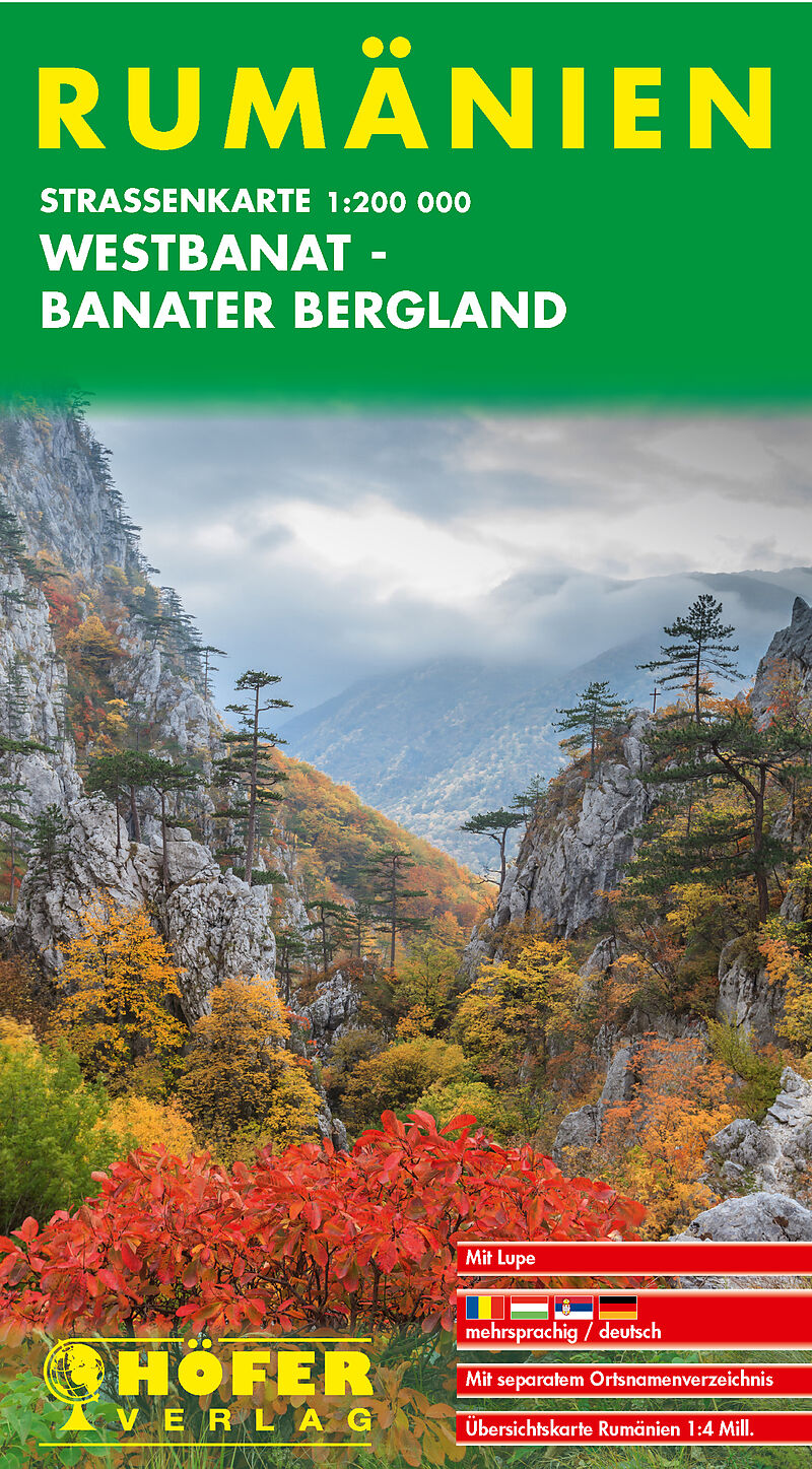 Straßenkarte 1:200 000 - 2-sprachig bis ins Detail - Mit separatem Ortsnamenverzeichnis mehrsprachig-deutsch - Übersichtskarte Rumänien 1:4 Mill. - Mit Lupe
