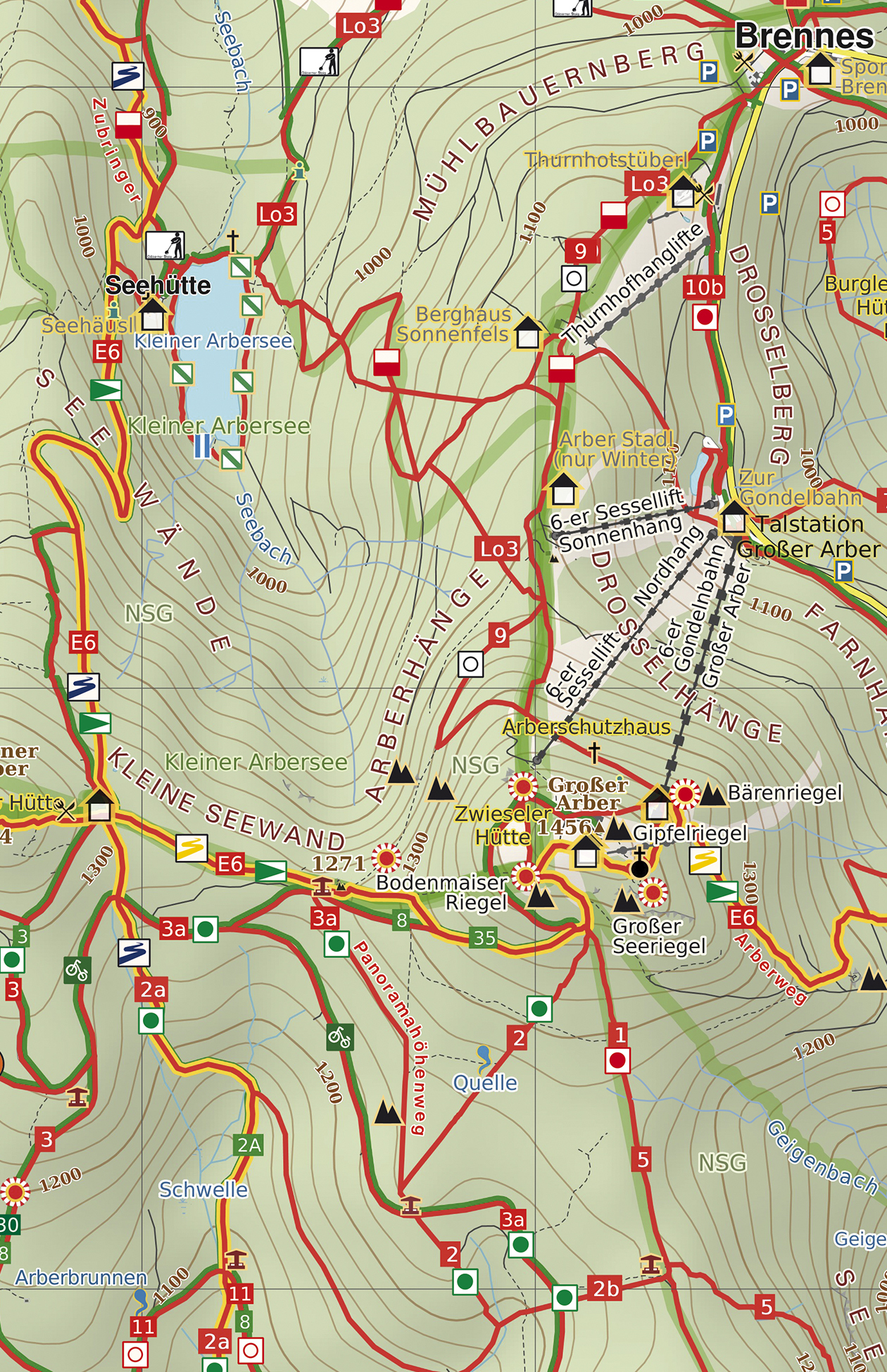 Detaillierte Wanderkarte Rund um Zwiesel, Großer Arber im Maßstab 1:25.000 der Edition PhoneMaps deckt das meistbesuchte Gebiet im Bayerischen Wald um Zwiesel zwischen den Bergen Gr. Arber und Gr. Rachel ab. Die präzise Kartografie zeigt markierte Wander- und ...