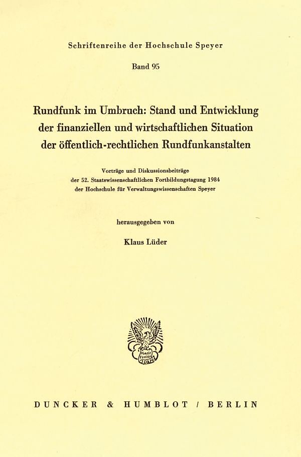 Inhalt Inhalt: W. Hilf, Die finanzielle Situation der öffentlich-rechtlichen Rundfunkanstalten. Lage und zukünftige Entwicklung - H.-W. Rombach, Möglichkeiten und Probleme der Sicherung eines wirtschaftlichen Handelns der öffentlich-rechtlichen Rundfunkanstalt...