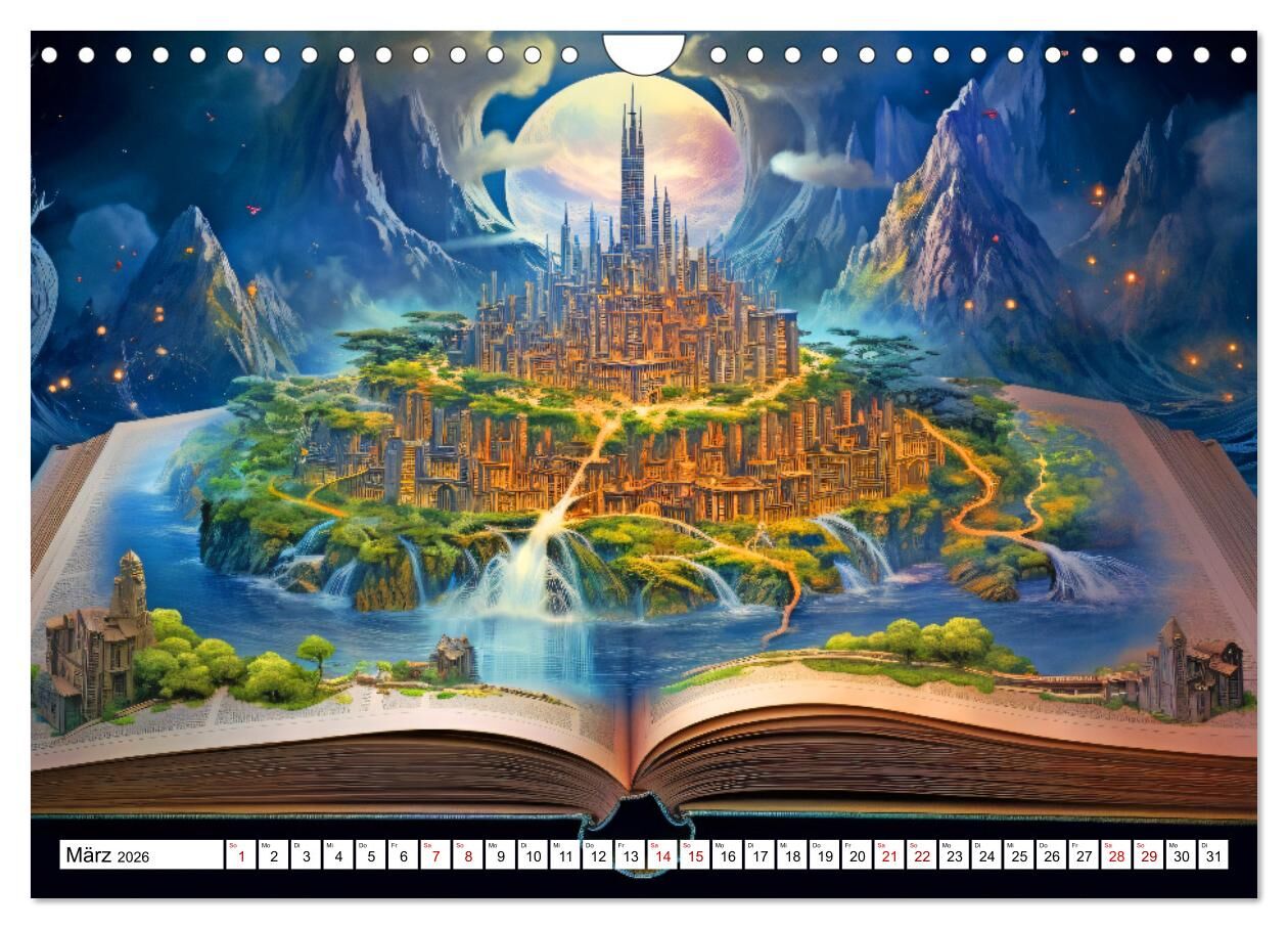 Mystische Welten - Mit Büchern die Grenzen der Phantasie erweitern (Wandkalender 2026 DIN A4 quer), CALVENDO Monatskalender