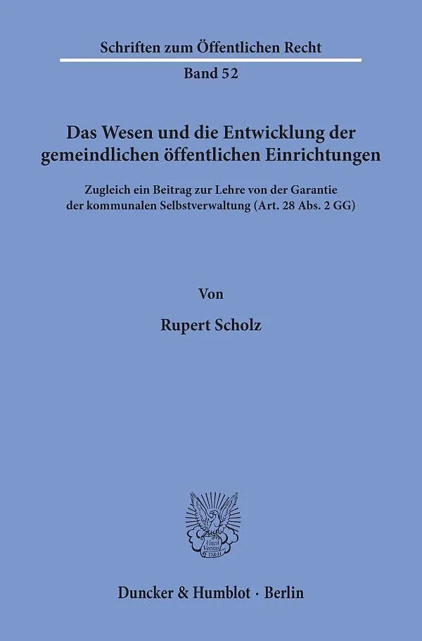 Das Wesen und die Entwicklung der gemeindlichen öffentlichen Einrichtungen.