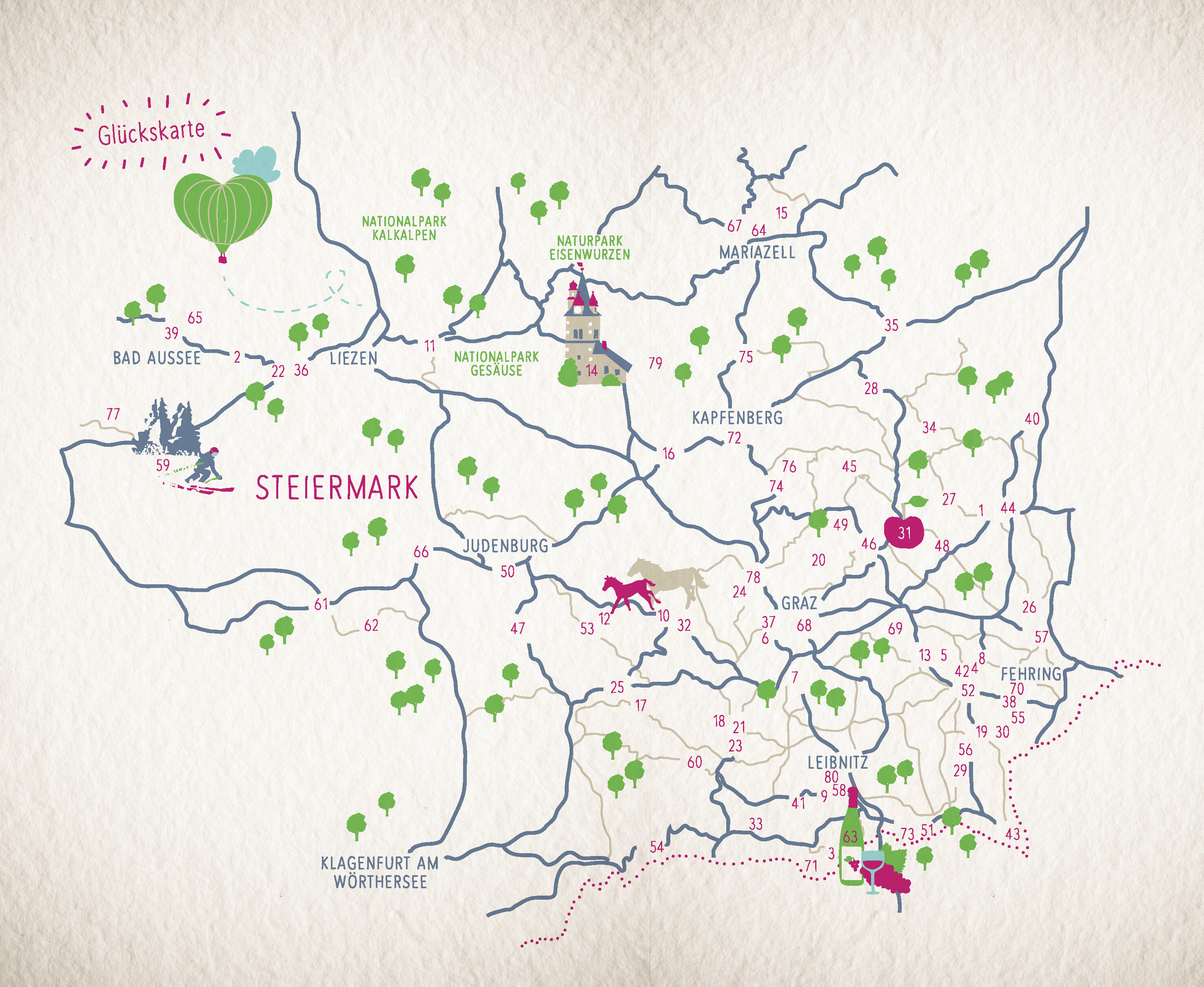 Der steirische Glückskompass führt zu hohen Bergen und dichten Wäldern im Norden, über vulkanischen Boden und zu heilsamen Thermen im Osten, durch hügelige Weingärten und grüne Aulandschaften im Süden und über weitläufige Almen im Westen. Auch abseits der beka...