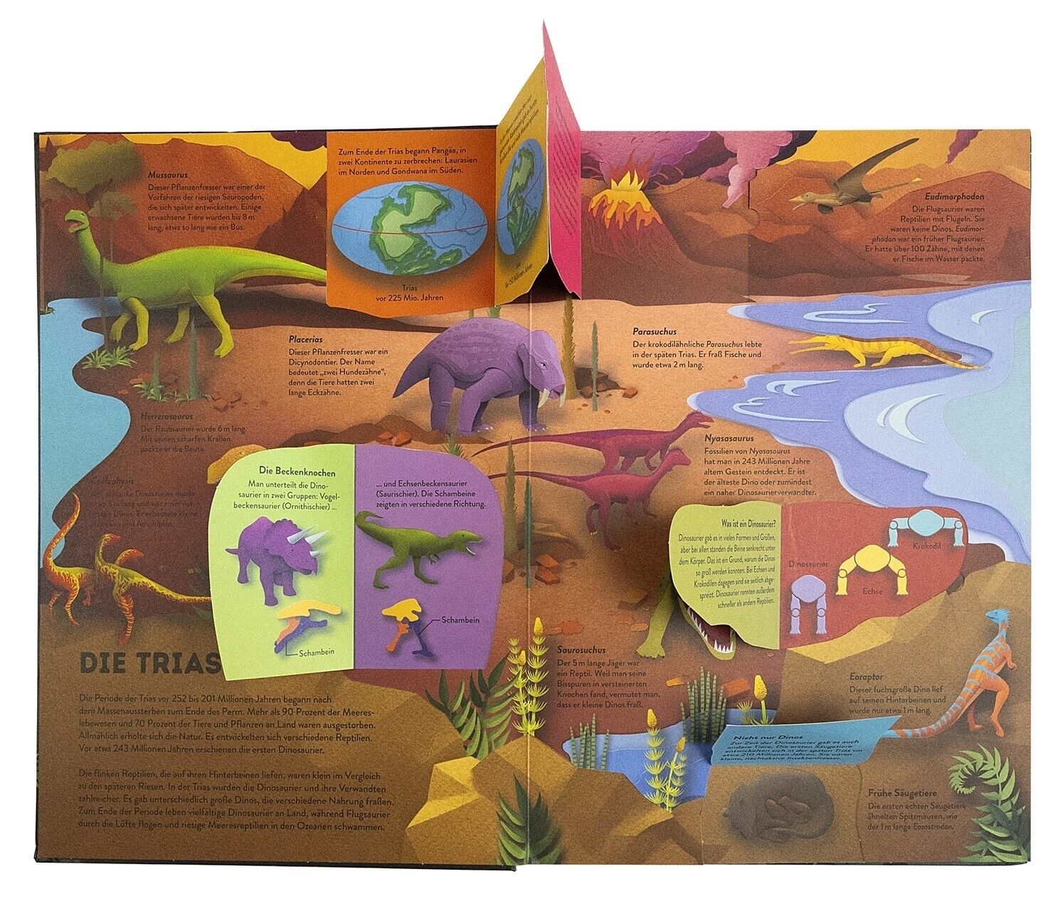 Interaktive Erkundungstour durch die Lebenswelt der Dinosaurier • Einzigartige Papierkunst: Mit diesem faszinierenden Sachbuch können Kinder ab 7 Jahren Schicht für Schicht Dinosaurier-Arten und ihre Lebensräume entdecken • Unter über 40 Klappen ver...