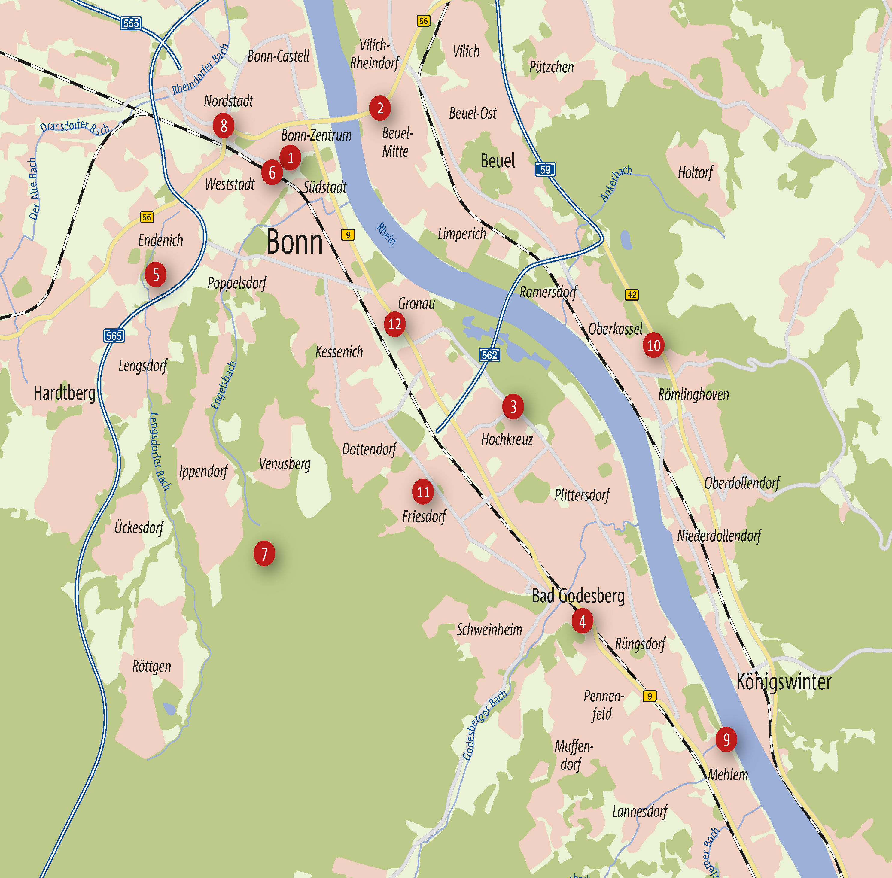 Ob in den charmanten Altstadtgassen oder am imposanten Münster, auf der Godesburg oder am Fuß des Post Towers: Bonns Viertel überraschen mit spannenden Geschichten und allerlei versteckten Schätzen. Während man auf den Spuren Beethovens wandelt, über die Museu...