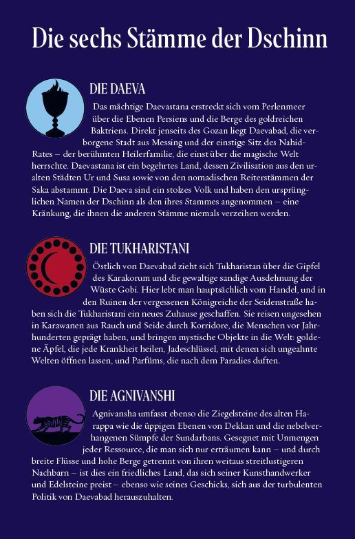 Das Leben der jungen Heilerin Nahri hat sich für immer verändert, als sie bei einem missglückten Ritual versehentlich den so geheimnisvollen wie betörenden Dschinnkrieger Dara beschwor. Sie gelangte mit seiner Hilfe nach Daevabad der Heimstätte aller Dschinns ...