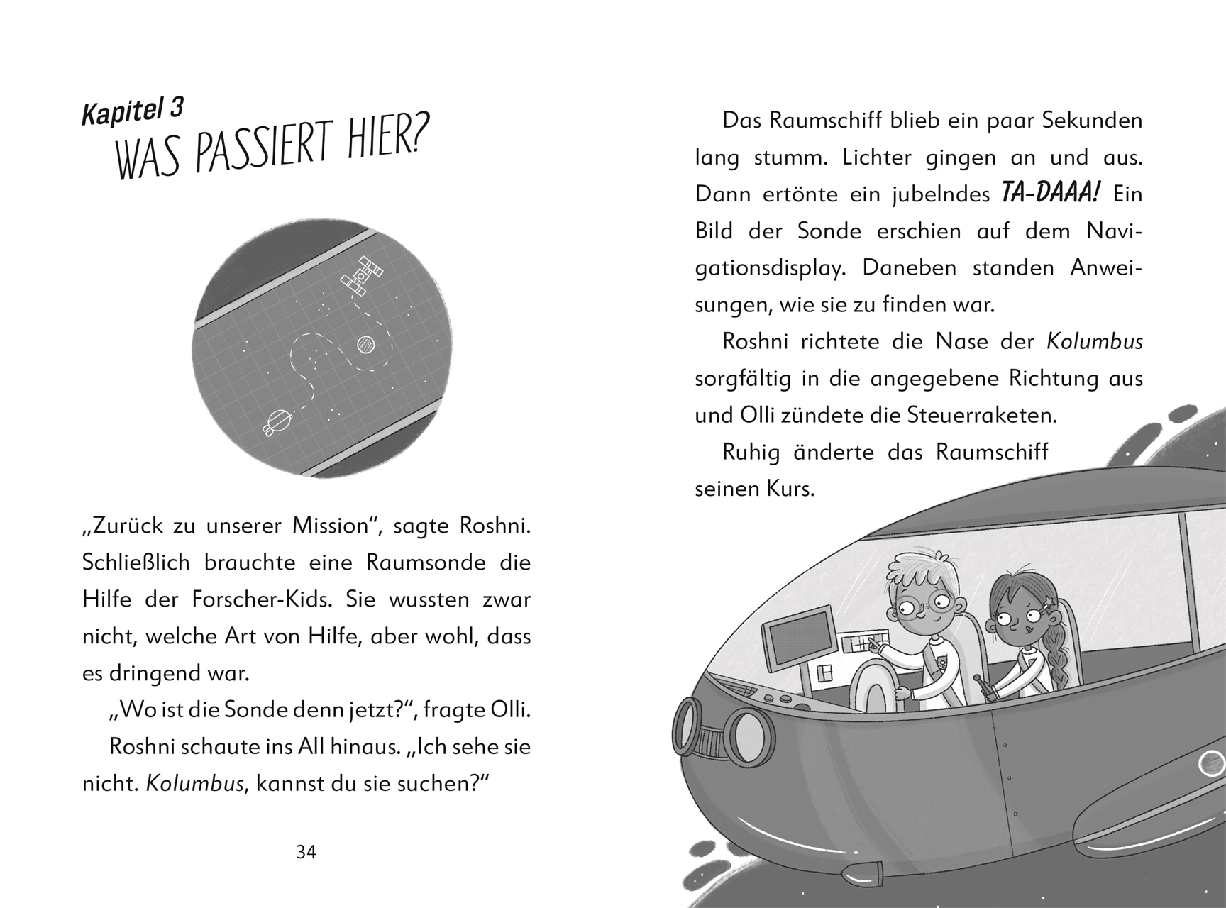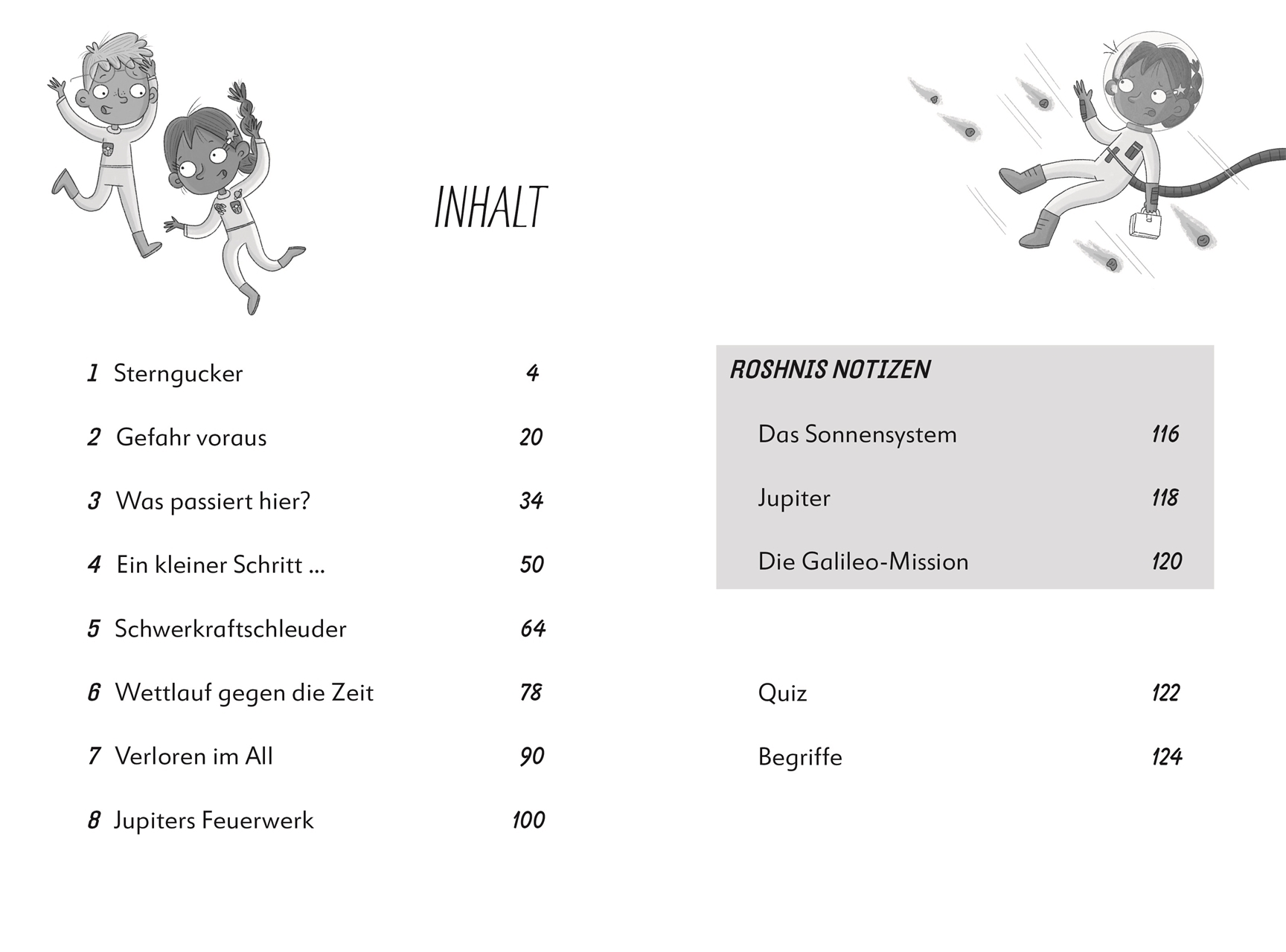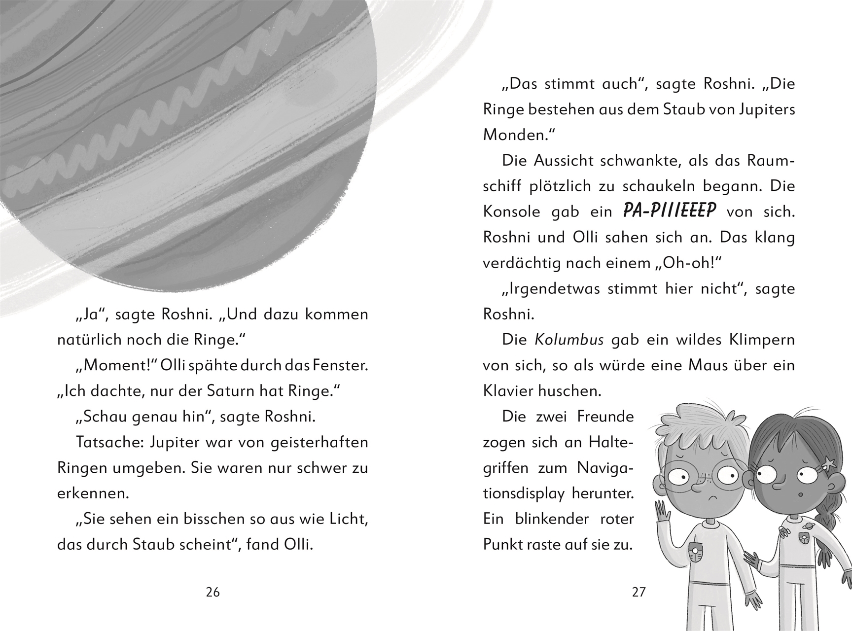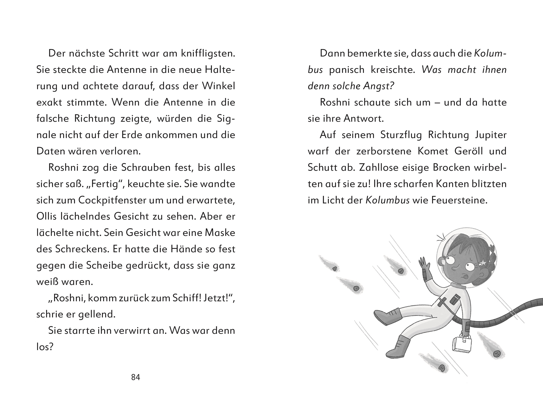 - Pro Band eine abgeschlossene Geschichte: Astronomie-Expertin Roshni und Regenwald-Forscher Olli bekommen es bei diesem Weltraum-Abenteuer mit einem gefährlichen Kometen zu tun