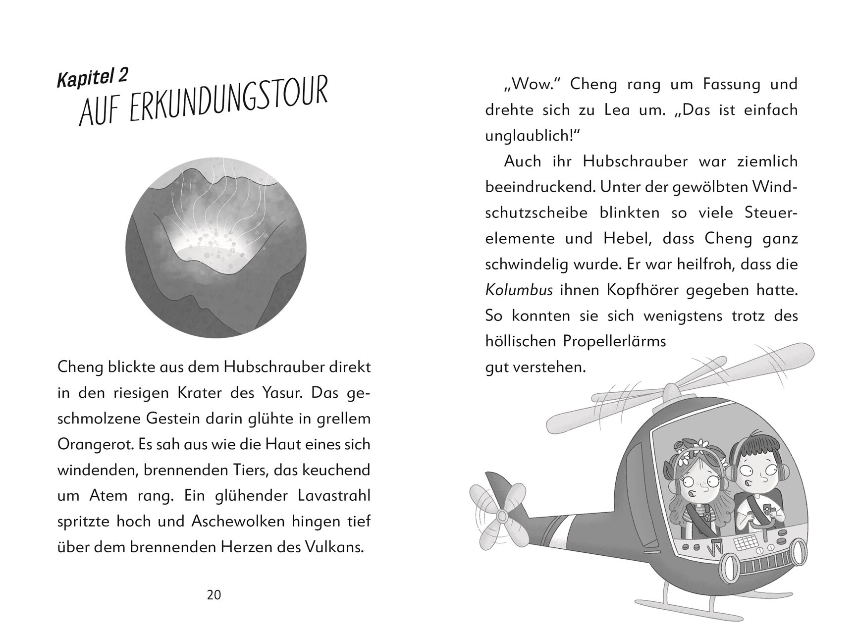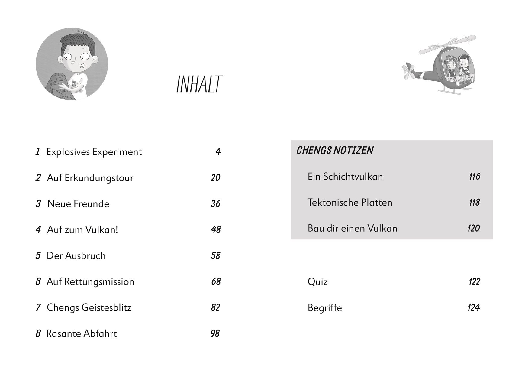 Ein Fall für Gesteins-Experten Cheng: Ein Vulkan bricht aus und bringt Menschen in Gefahr. Cheng und Tier-Expertin Lea ist sofort klar, dass ihre Hilfe gebraucht wird. Doch plötzlich sind ihre neuen Freunde verschwunden und der Vulkan spuckt jeden Moment Lava. Eine turbulente Rettungsmission mit dem Hubschrauber beginnt. Wenn bloß der dunkle Rauch nicht wäre Leseabenteuer mit den Forscher-Kids ein fesselnder Mix aus Action, Magie und Sachwissen.
