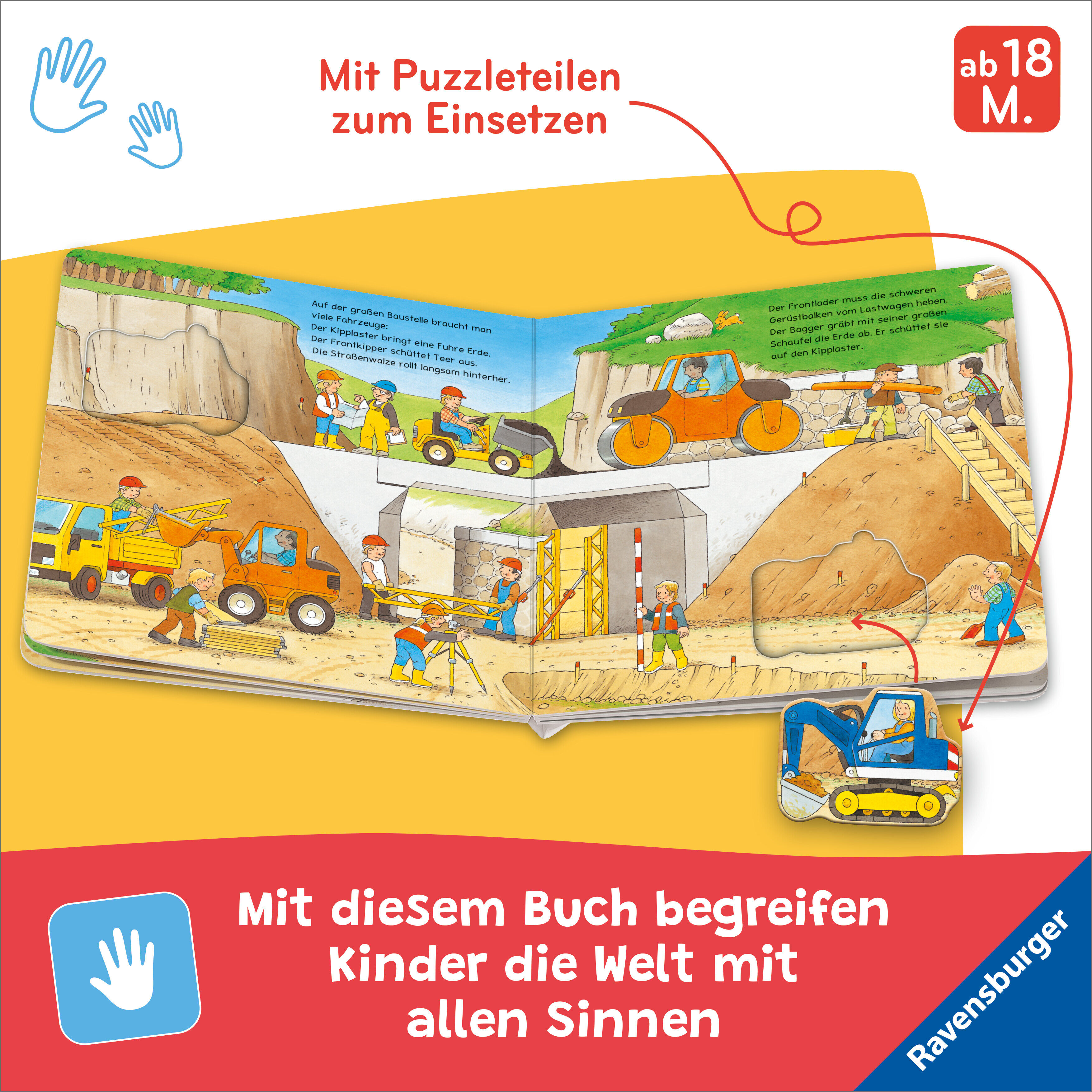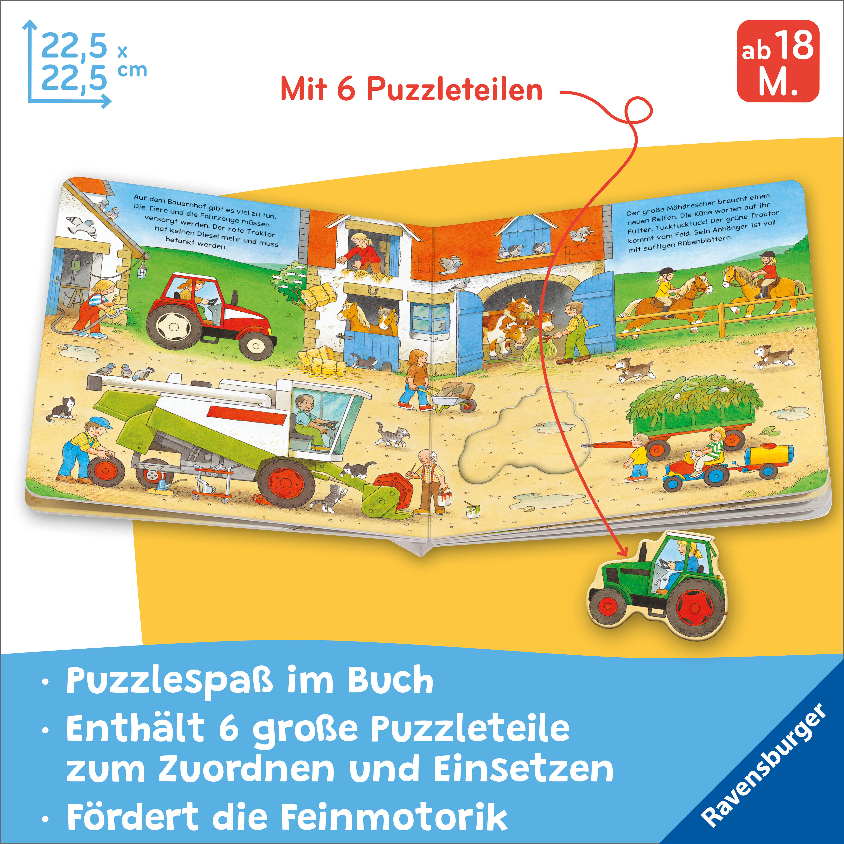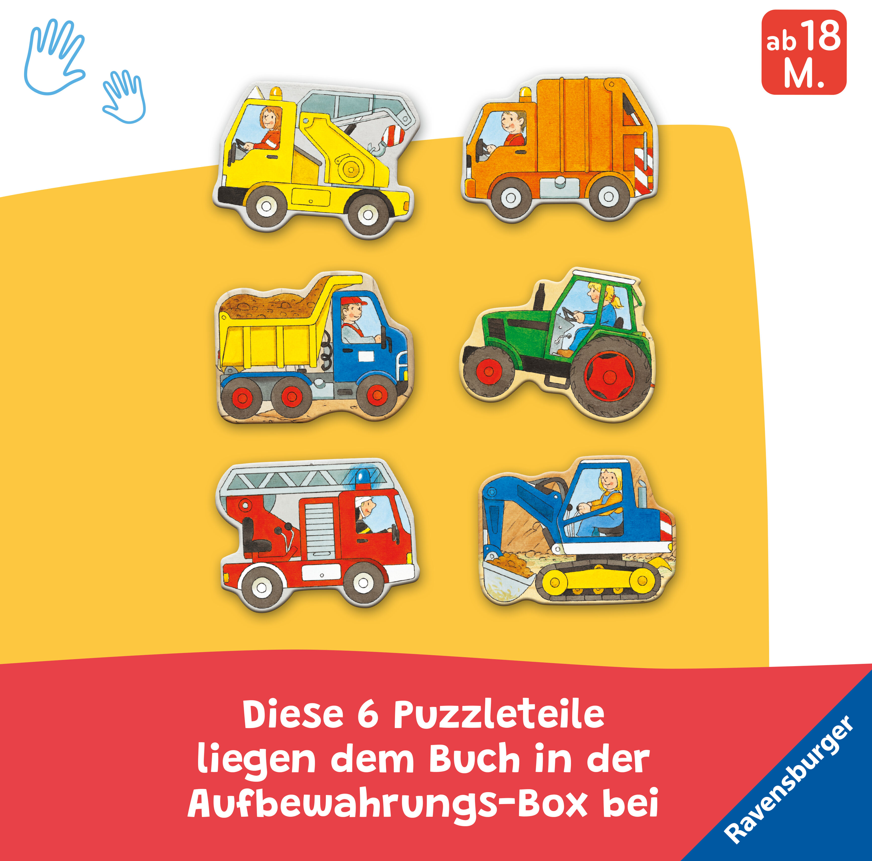 Welches Fahrzeug fährt wohin? Bagger, Traktor oder Feuerwehr? Aus sechs großen Puzzleteilen können die Kleinen die Fahrzeuge auswählen, die zur Baustelle, zum Bauernhof oder in die Stadt passen. Die stabilen Puzzleteile sind für kleine Kinderhände gut zu greif...