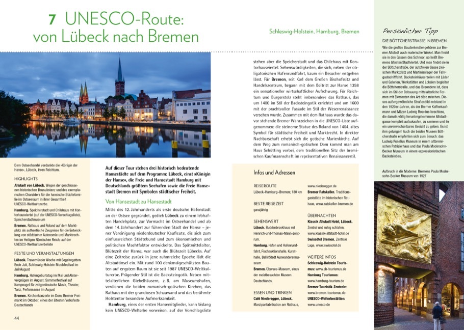 Der Reiseführer für´s Handschuhfach: Ob für einen Wochenendtrip oder einen längeren Urlaub, mit diesem Buch wissen Sie, wo es langgeht. Brechen Sie auf zur UNESCO-Route von Lübeck nach Bremen, entdecken Sie die Alte Salzstraße oder fahren Sie auf den Spuren de...