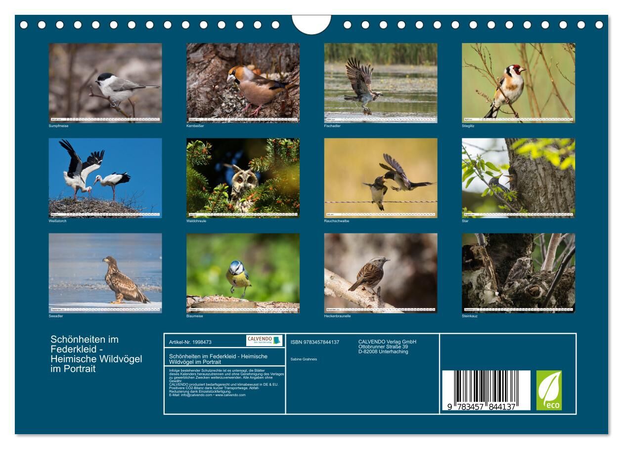 Schönheiten im Federkleid - Heimische Wildvögel im Portrait (Wandkalender 2026 DIN A4 quer), CALVENDO Monatskalender