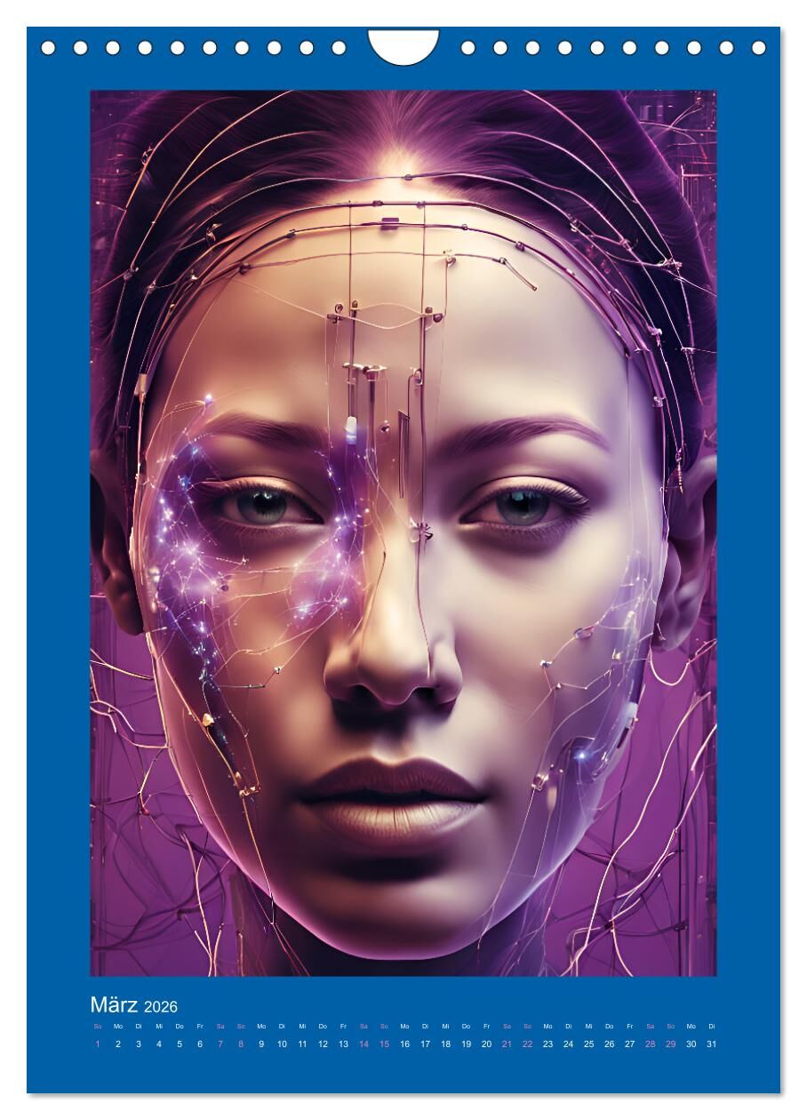 Tauchen Sie ein in die faszinierende Welt der Technologie und Menschlichkeit mit unserem Wandkalender Gesichter der Zukunft". Jeder Monat präsentiert beeindruckende KI generierte Bilder, die die harmonische Verbindung zwischen Mensch und Maschine zeigen. Lasse...