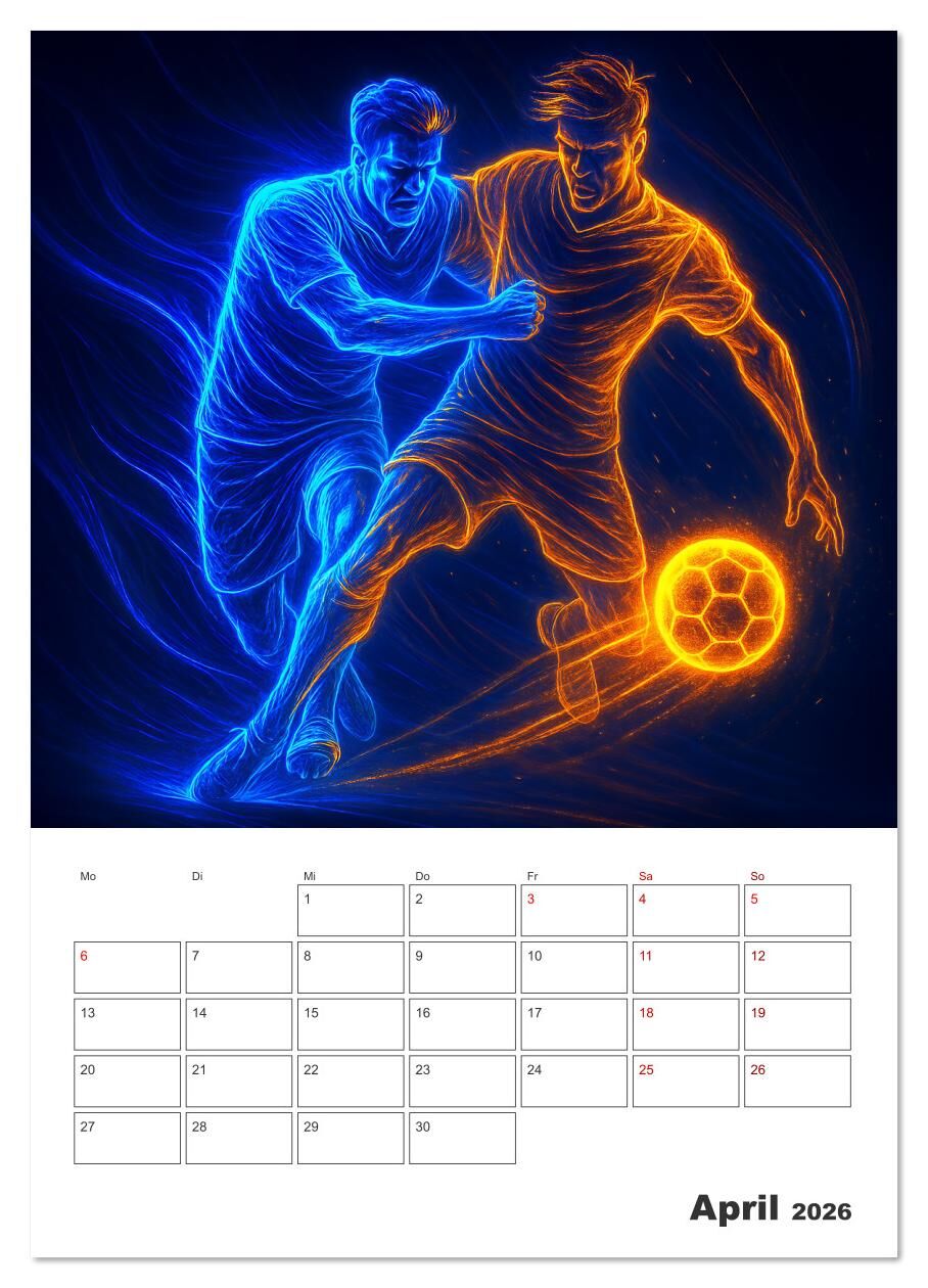 2026 Vision Fußball zeigt das Spiel, wie du es noch nie gesehen hast: voller Dynamik, Licht und Emotion. In leuchtenden Neonfarben erwachen mit KI generierte Fallrückzieher, Zweikämpfe und Teamgeist-Momente zu futuristischem Leben. Dieser Kalender fängt nicht ...