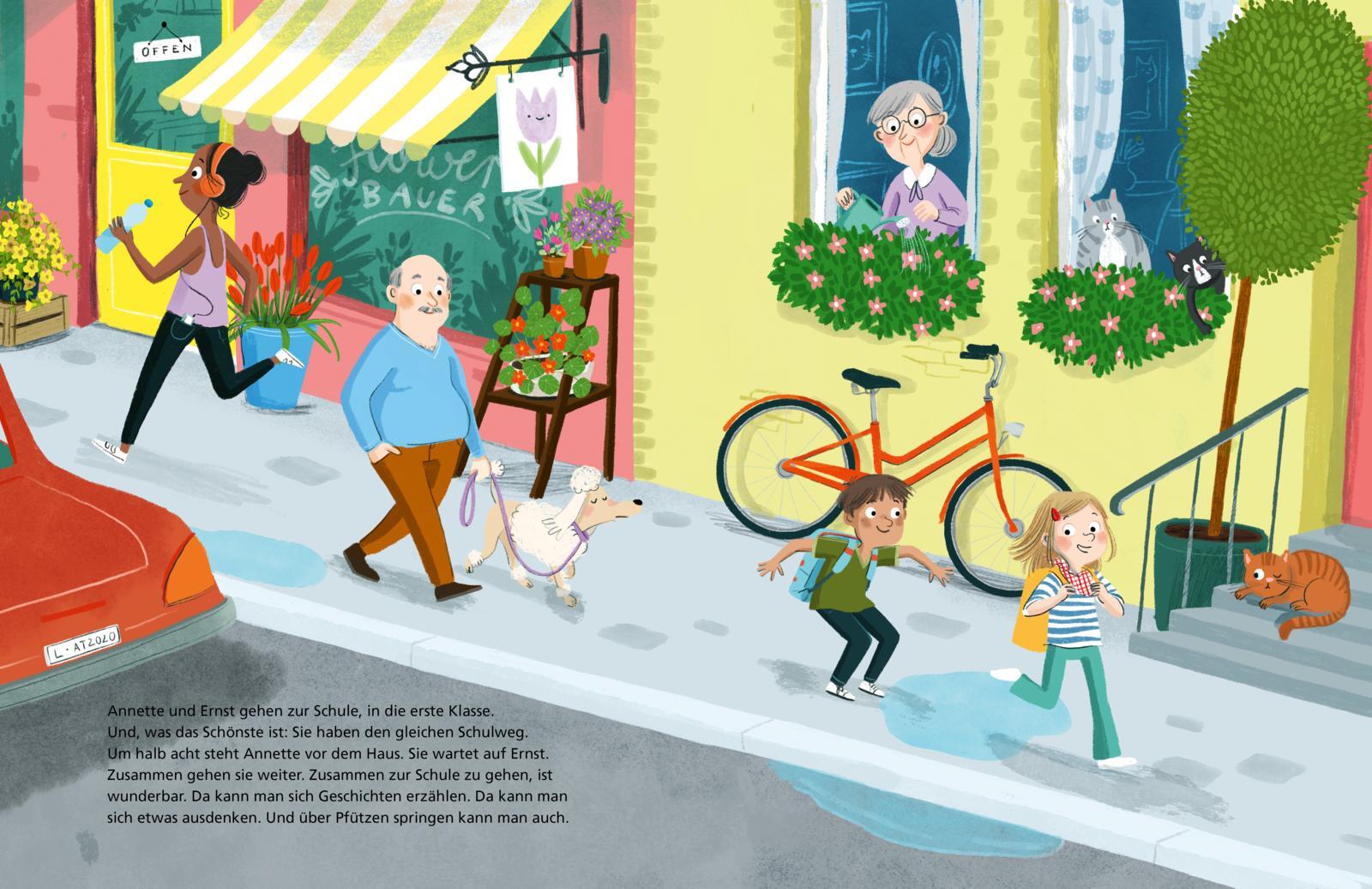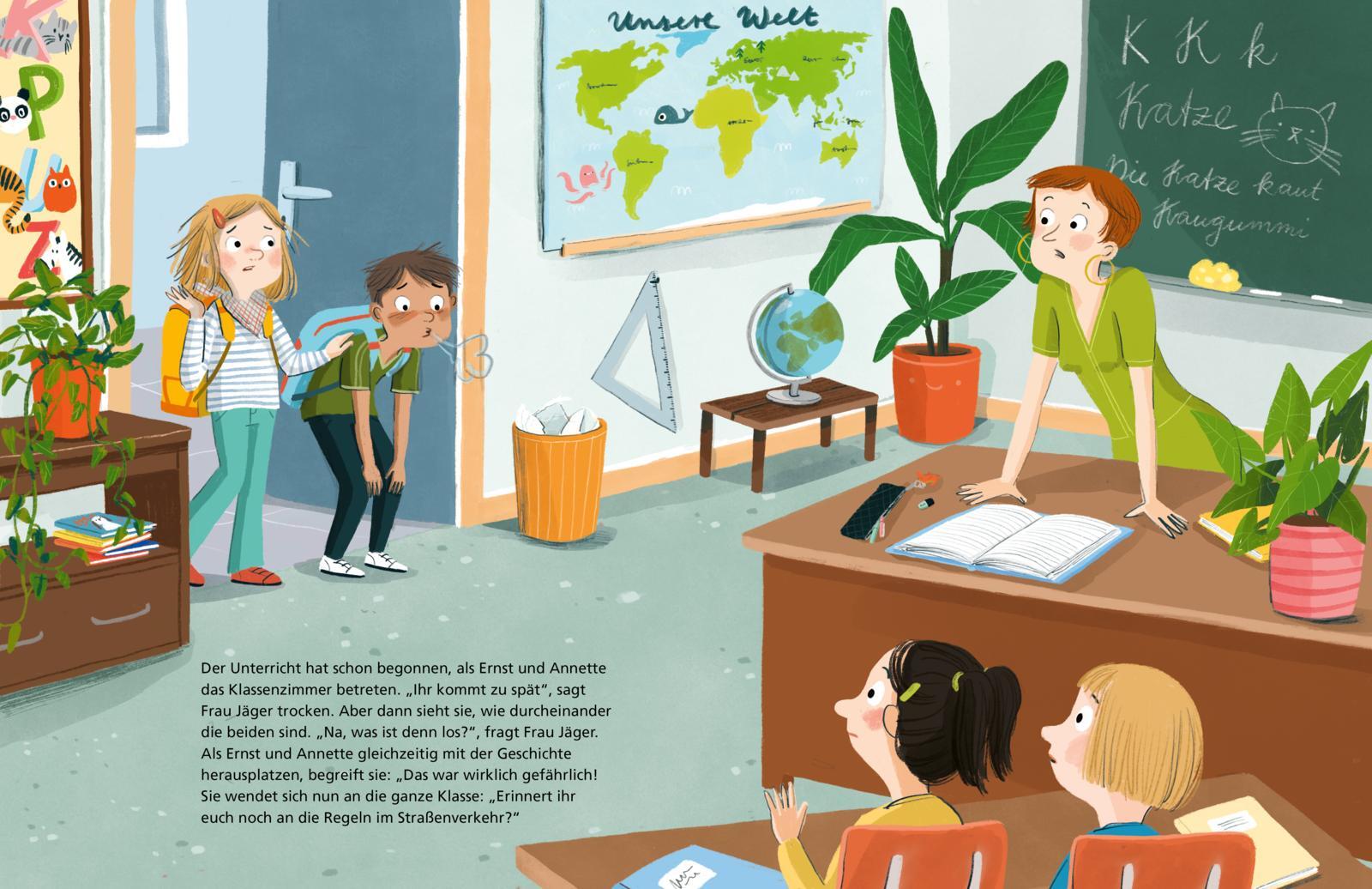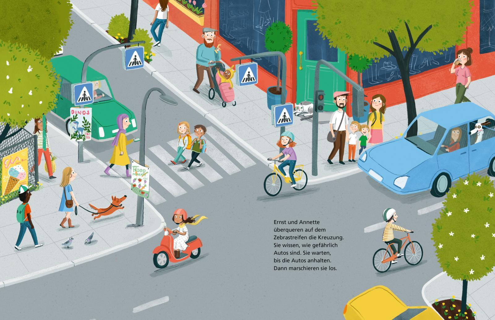 Bleib sicher im Straßenverkehr! Vorlesegeschichte zum Thema Sicherheit im Straßenverkehr für Kinder ab 4 Jahren. Zebrastreifen, Ampel und Co wie wichtig es ist, im Straßenverkehr gut aufzupassen und was die Verkehrsschilder bedeuten, wissen Ernst und Annette ...