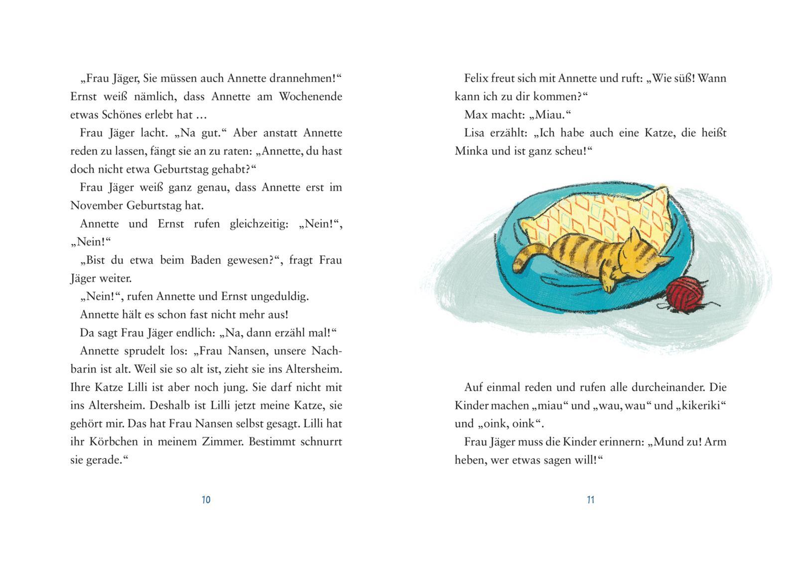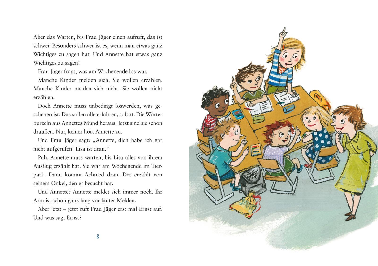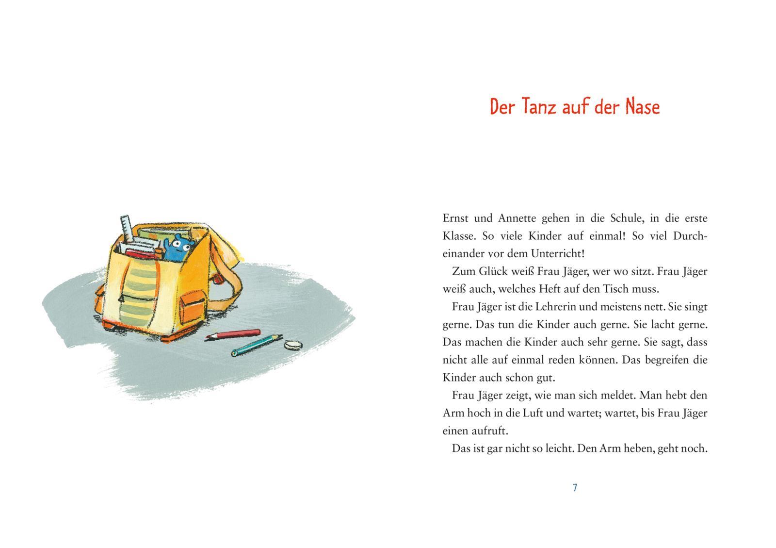 Schule macht Spaß! Annette und Ernst sind stolz darauf, Erstklässler zu sein. Heute geht es im Unterricht allerdings ganz schön drunter und drüber. Frau Jäger, ihre sonst so freundliche Klassenlehrerin, schimpft: Ihr könnt mir doch nicht alle auf der Nase rum...