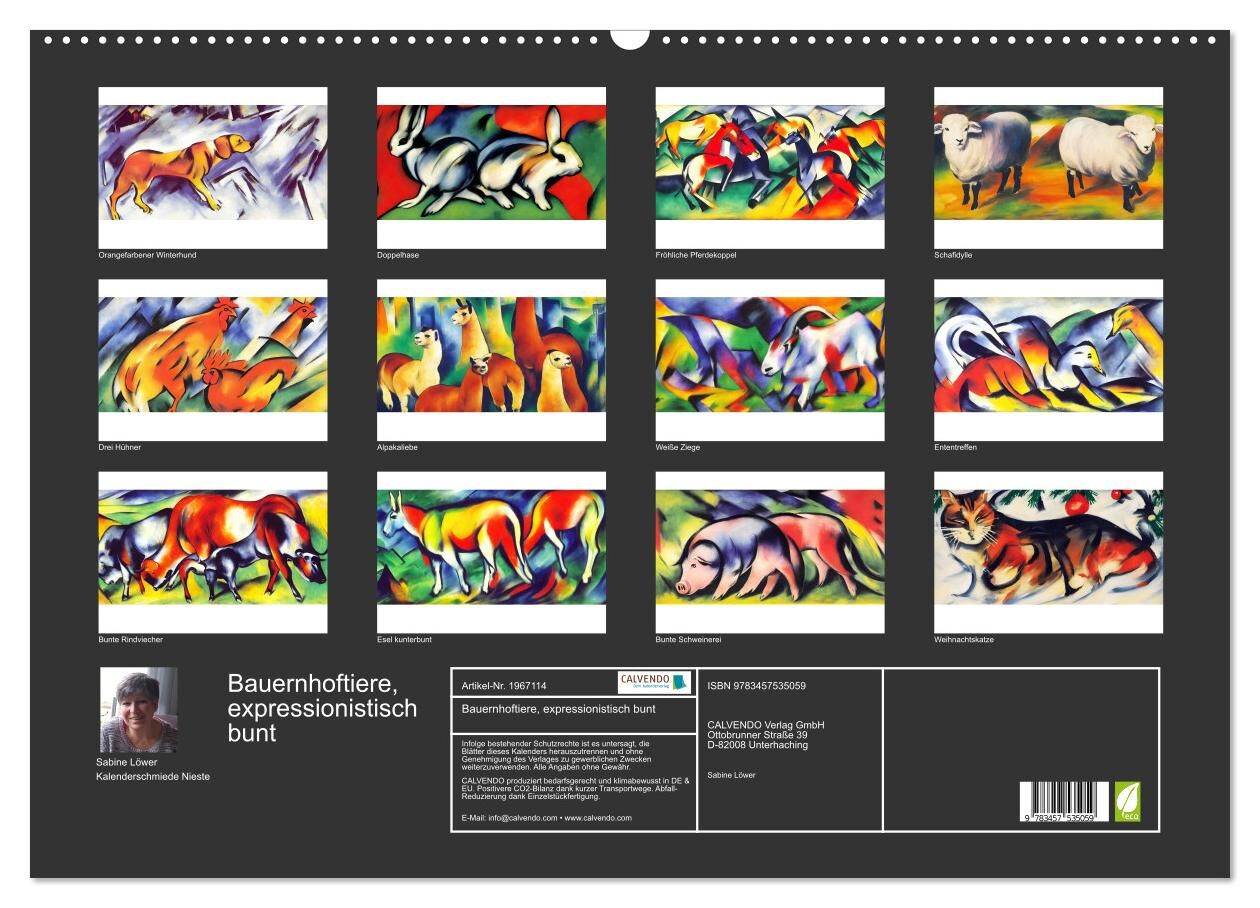 Bauernhoftiere, expressionistisch bunt (Wandkalender 2026 DIN A2 quer), CALVENDO Monatskalender