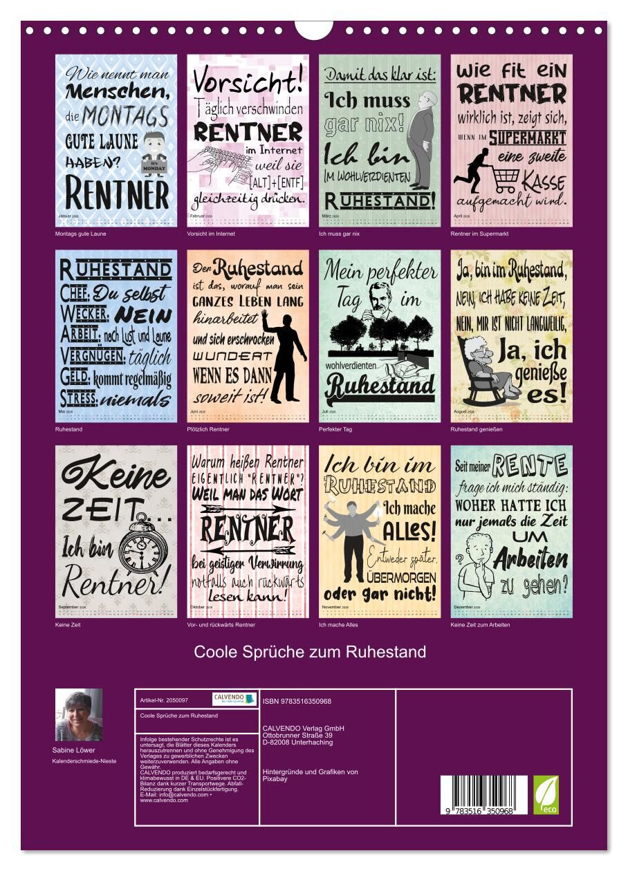 Coole Sprüche zum Ruhestand (Wandkalender 2026 DIN A3 hoch), CALVENDO Monatskalender